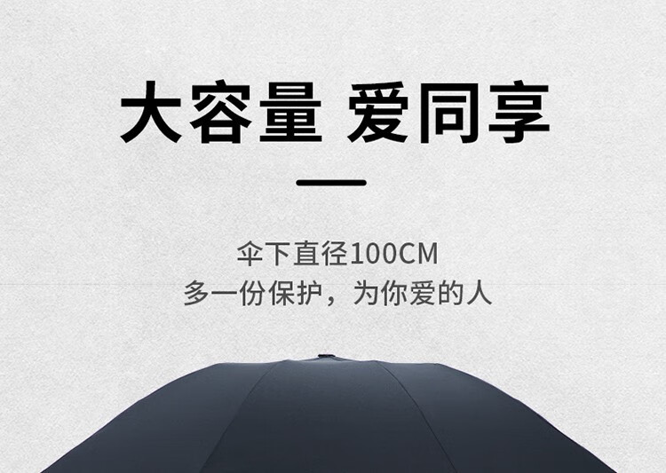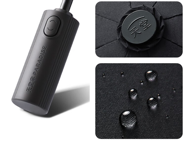 天堂伞全自动抗风拒水雨伞加固便携商务伞折叠反向晴雨伞男女 乌木黑-8骨经典