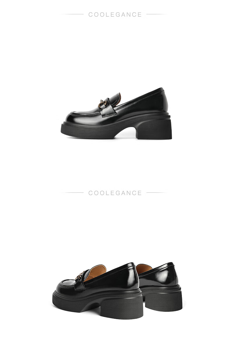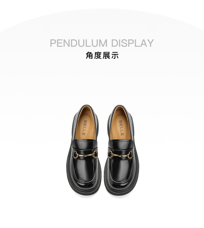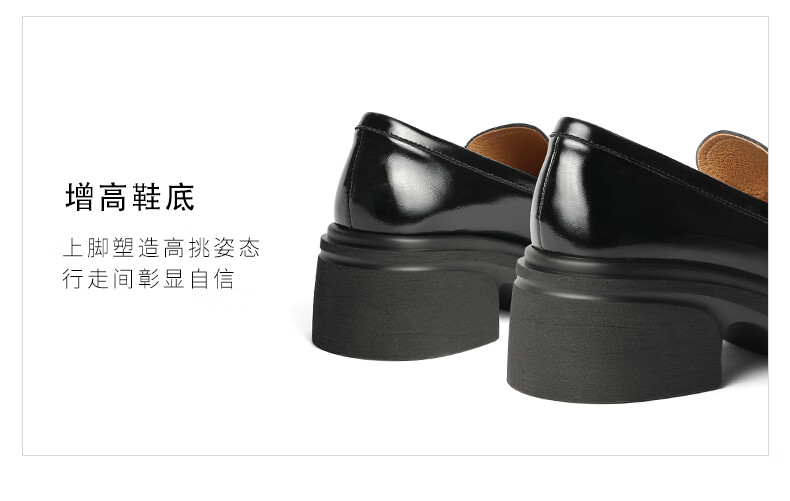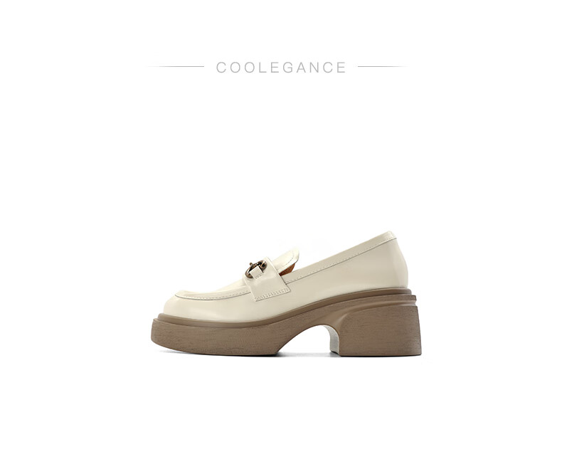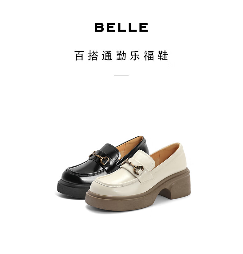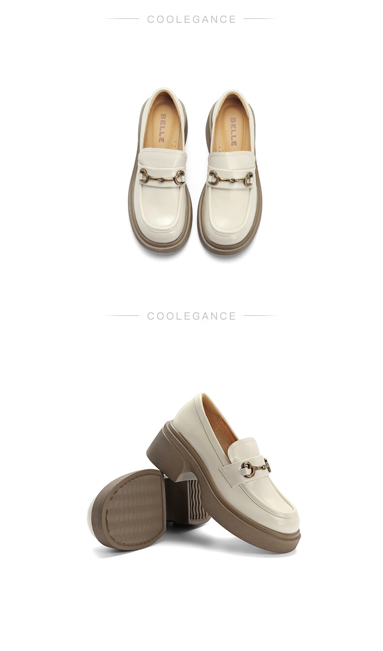 百丽气质通勤乐福鞋女23秋季新款百搭增高厚底单鞋B1534CA3 米色 34