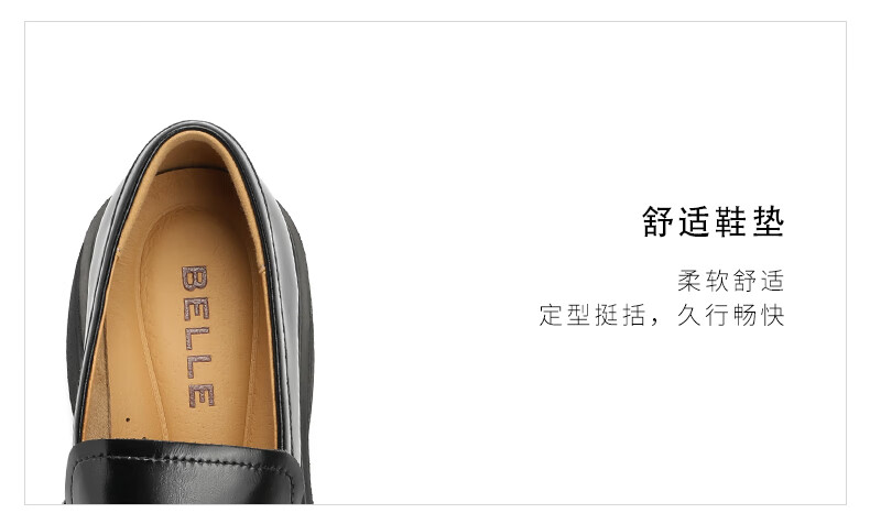 百丽牛皮商务休闲皮鞋男百搭马丁鞋子橡胶底86181CM0 黑 42