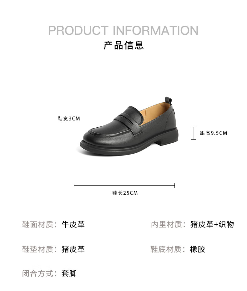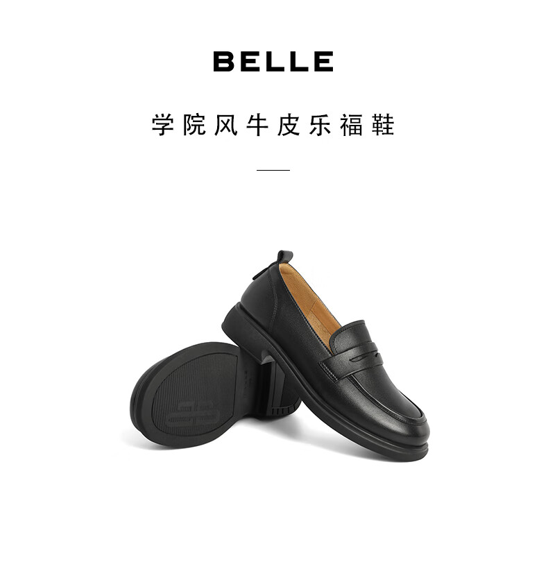 百丽学院风JK乐福鞋女23秋季新商场同款牛皮百搭通勤A3X1DCA3 黑色 37