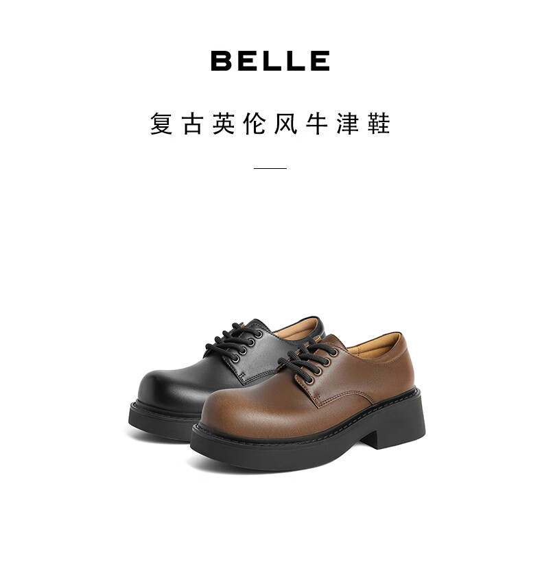 百丽丑萌大头牛津鞋女23秋季新款学院JK风单鞋B1522CM3 黑色 34
