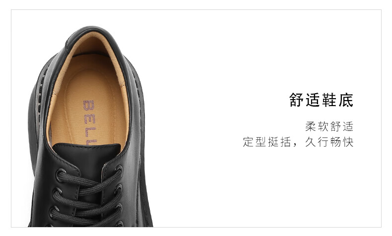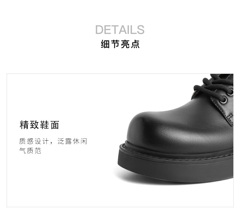 百丽牛皮商务休闲皮鞋男百搭马丁鞋子橡胶底86181CM0 黑 42