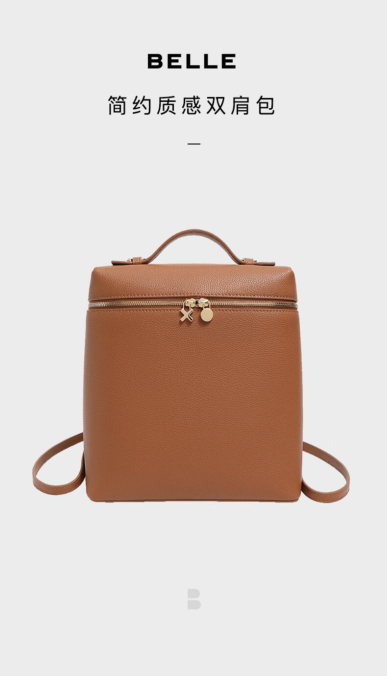 百丽包包女2023秋季新商场同款时尚简约荔枝纹双肩包X9237CX3【预售】 棕色 F
