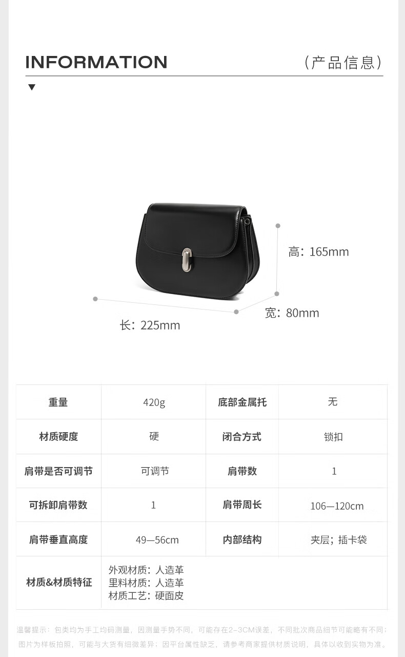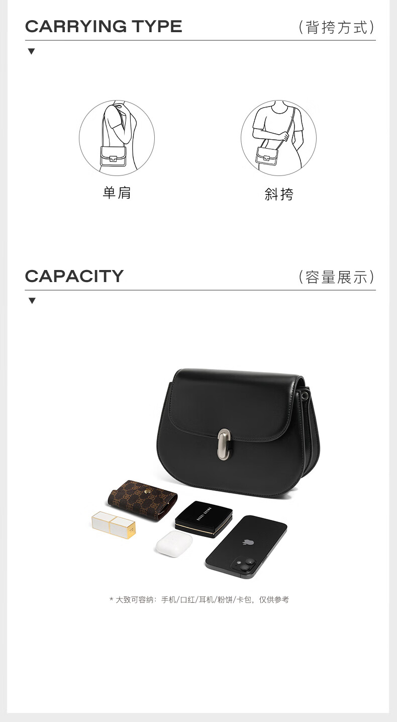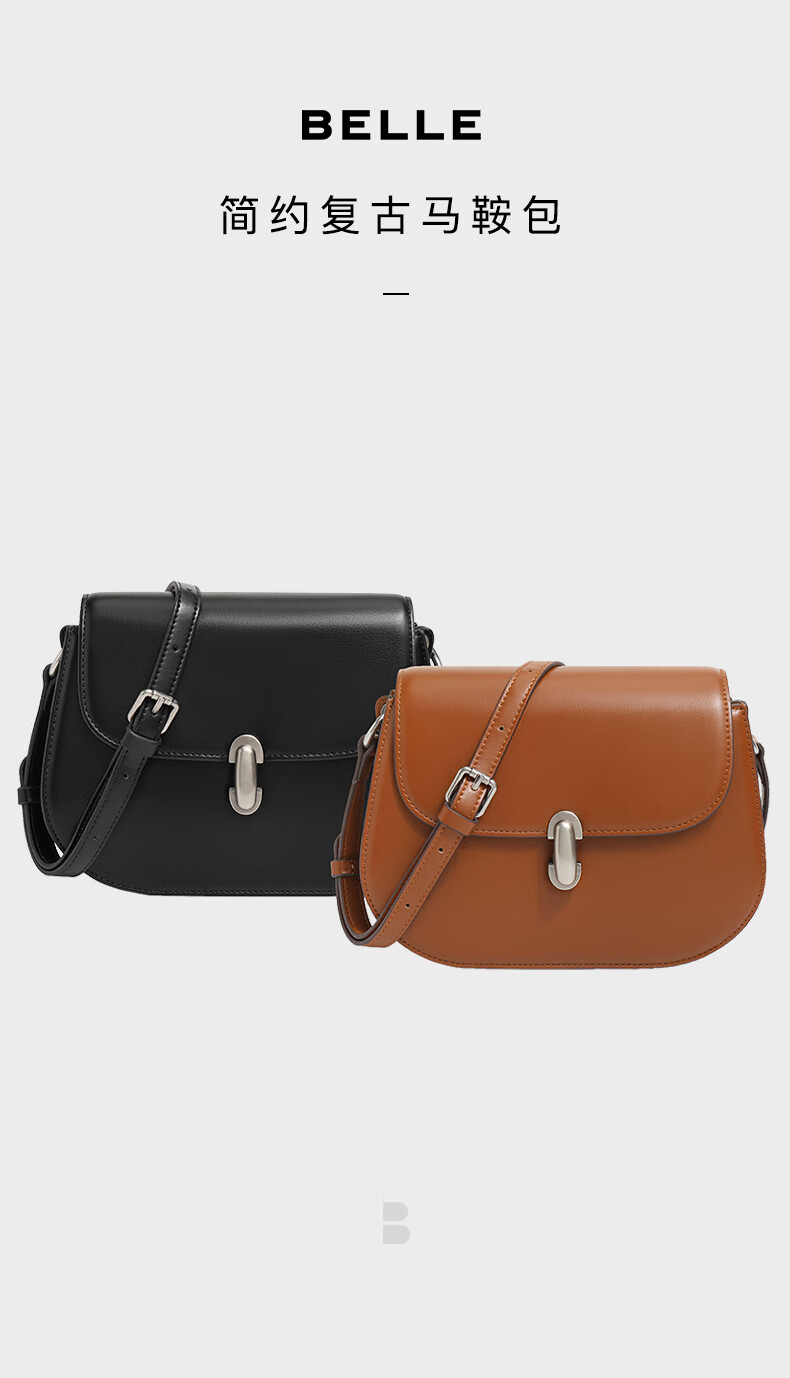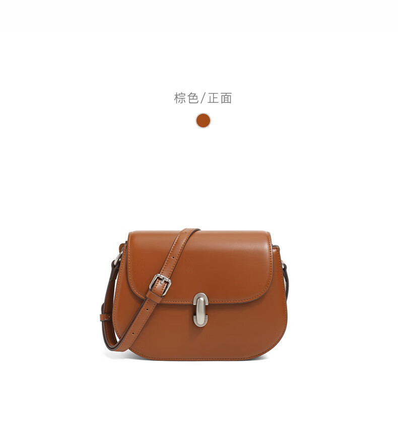 百丽包包女2023冬季新款简约复古质感单肩斜挎马鞍包X6861DX3【预售】 棕色 F