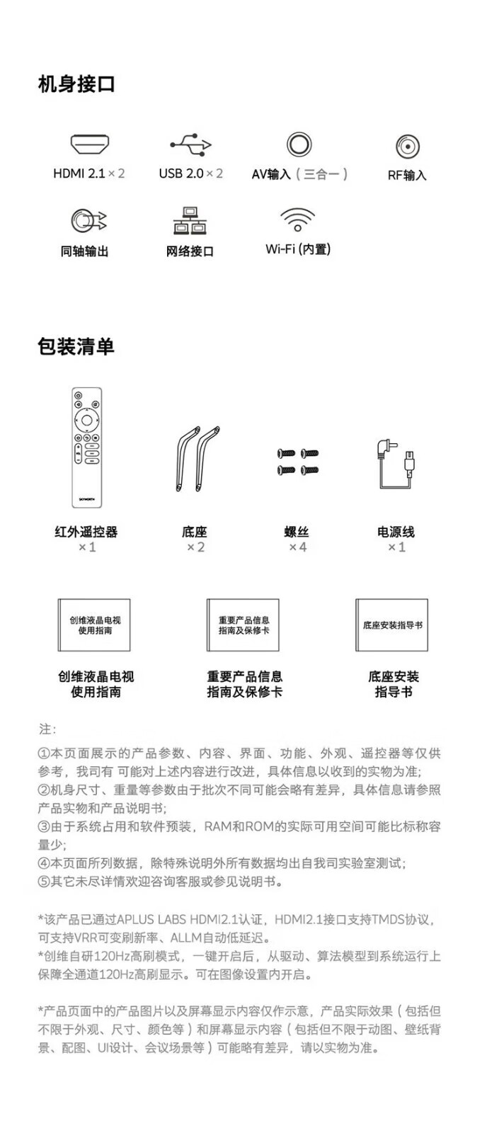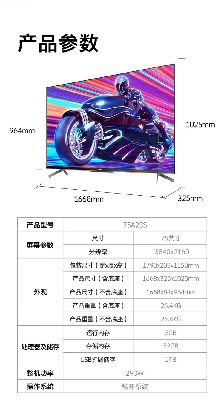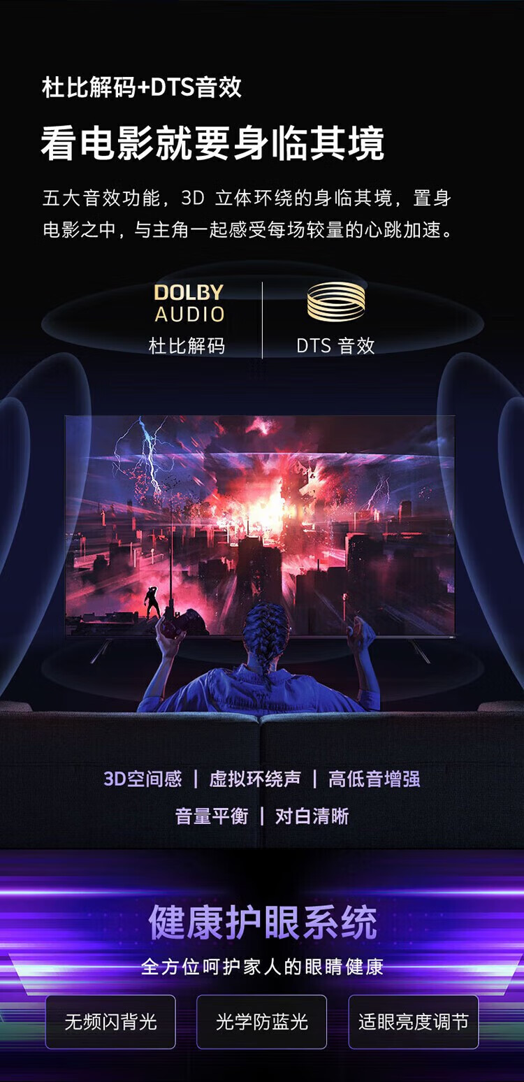 创维(Skyworth)75G23 120HZ高刷屏 远场语音 杜比解码DTS音效平板电视 75英寸