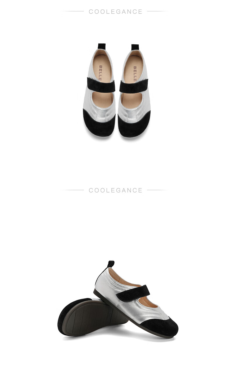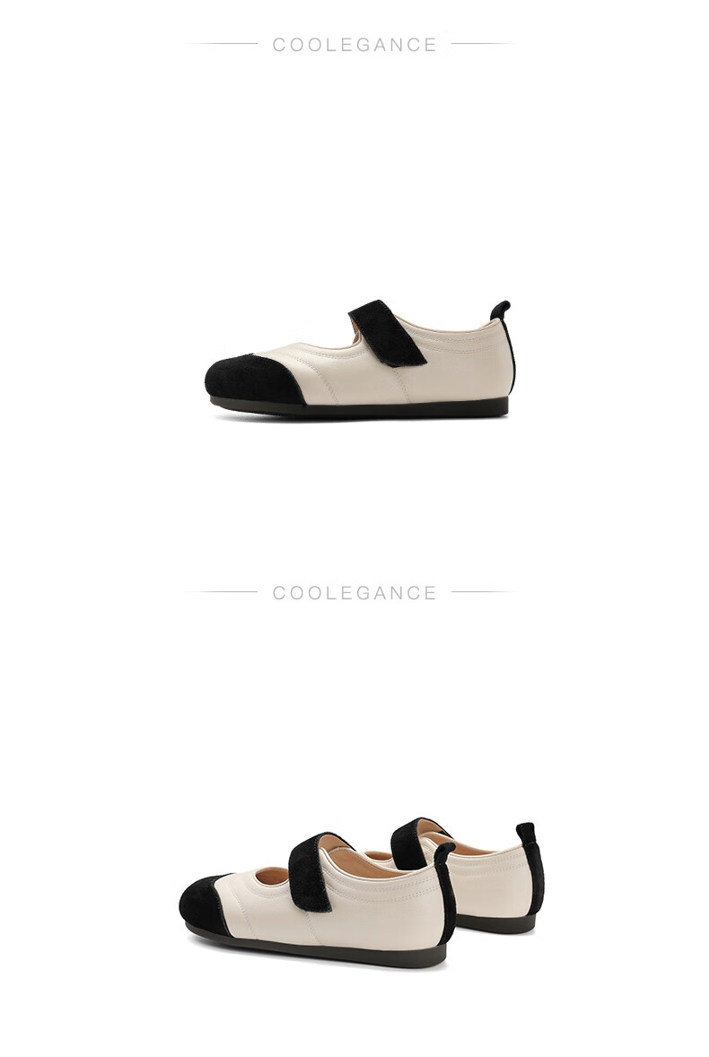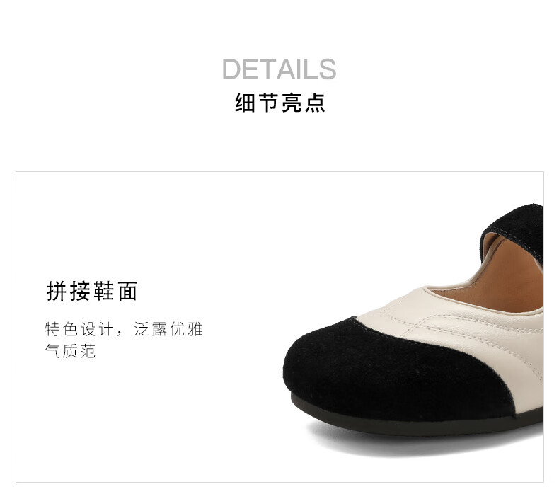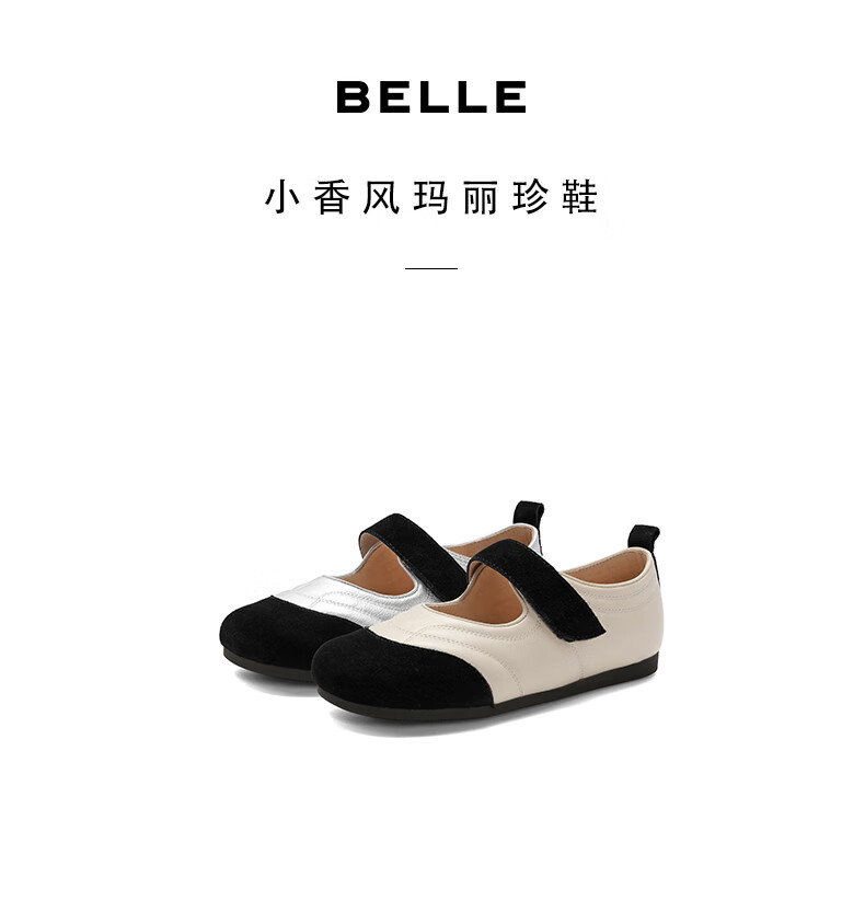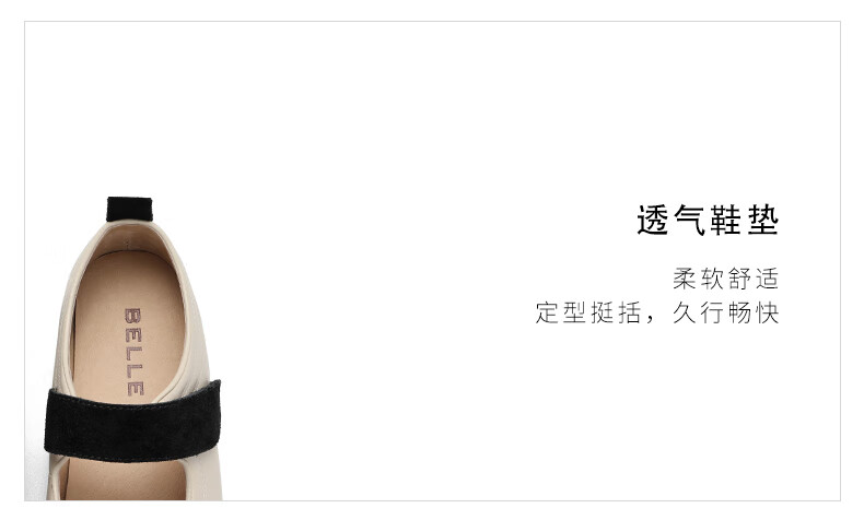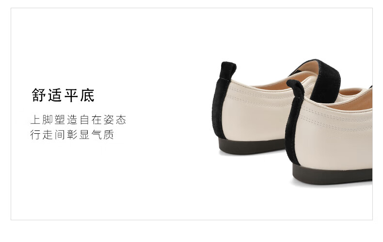 百丽撞色豆豆鞋女2023秋季新款柔软舒适平底单鞋B1559CQ3预售 米色 36