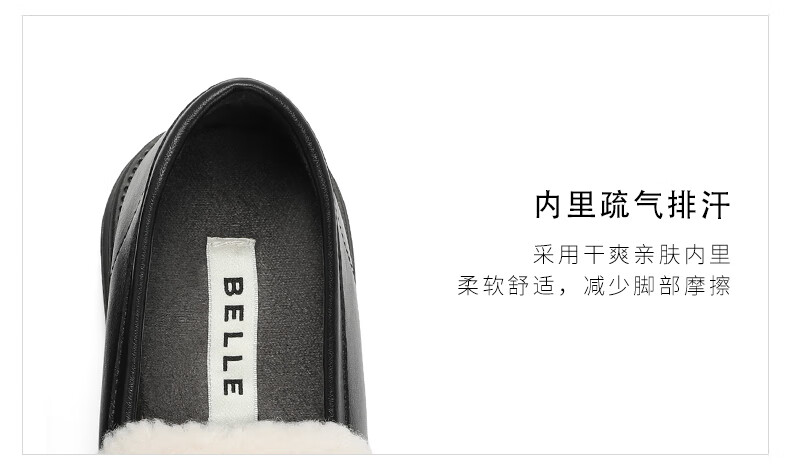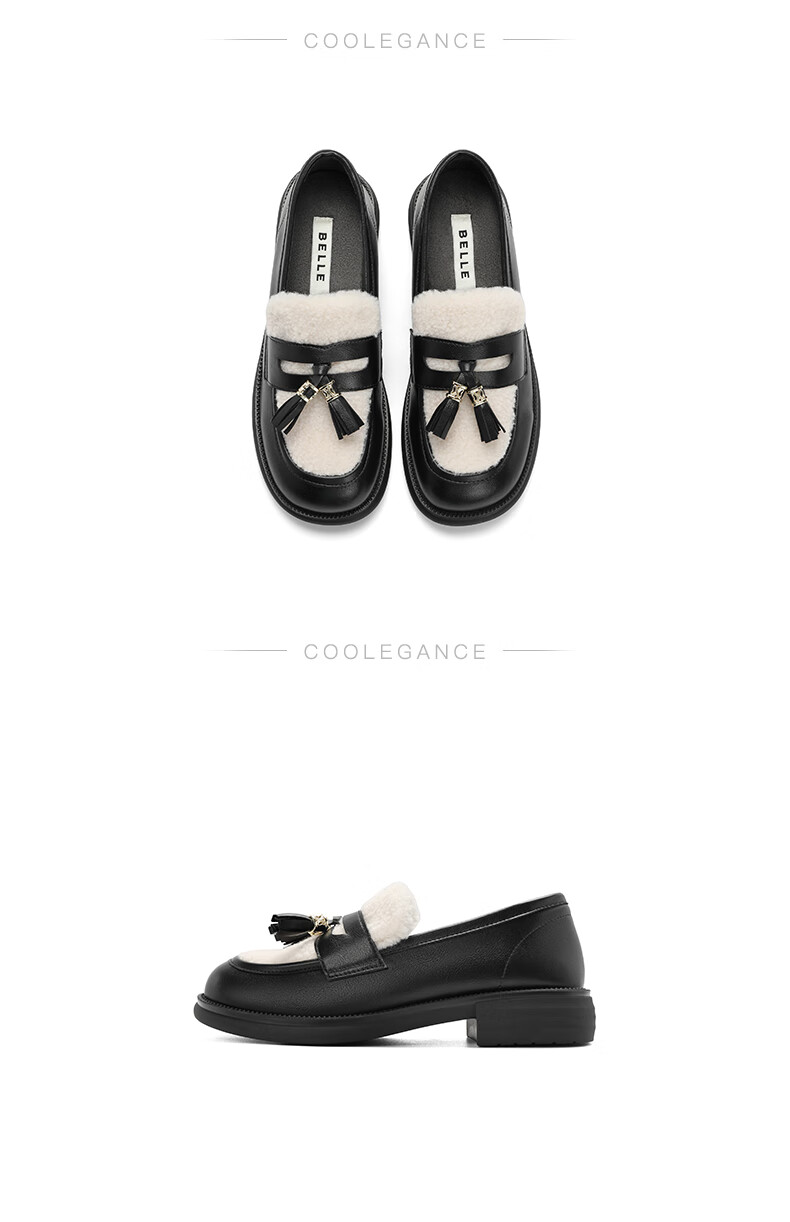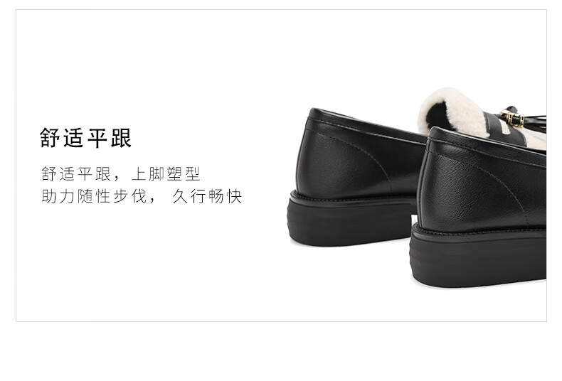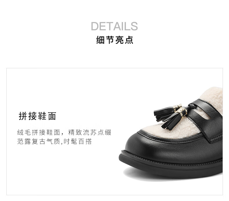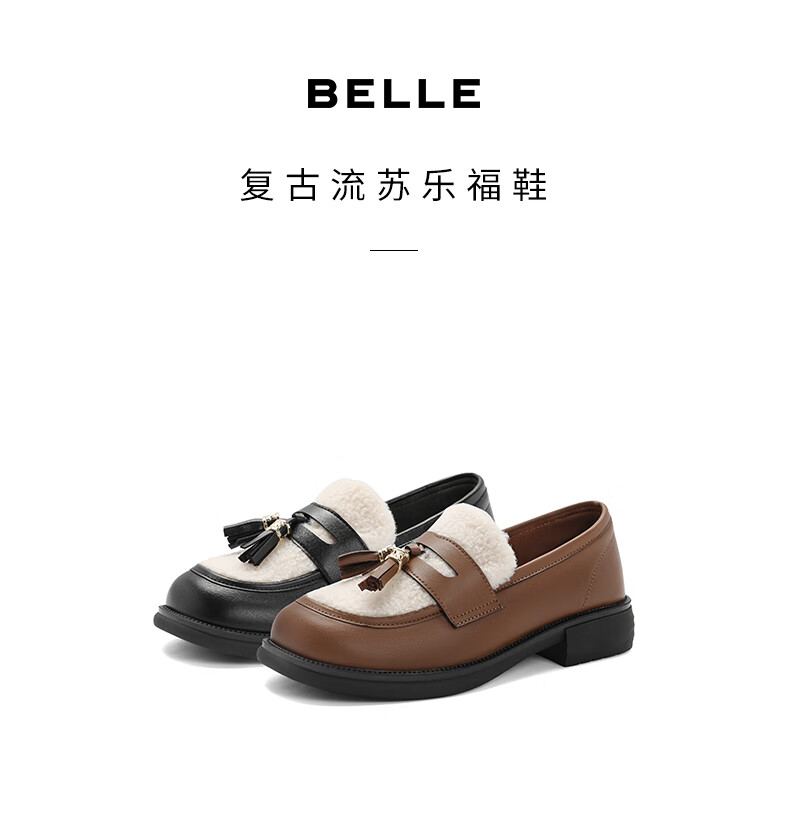 百丽气质乐福鞋女2023秋季新款复古英伦风一脚蹬小皮鞋B1504DA3 黑色 34