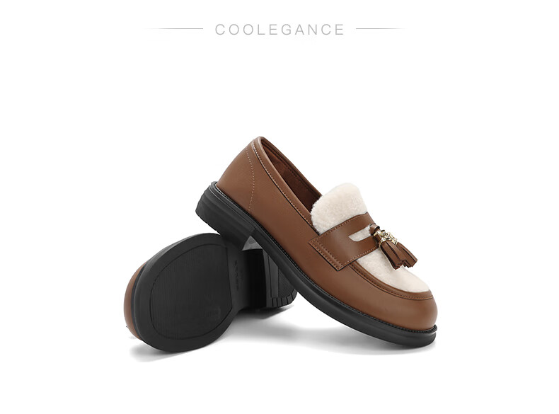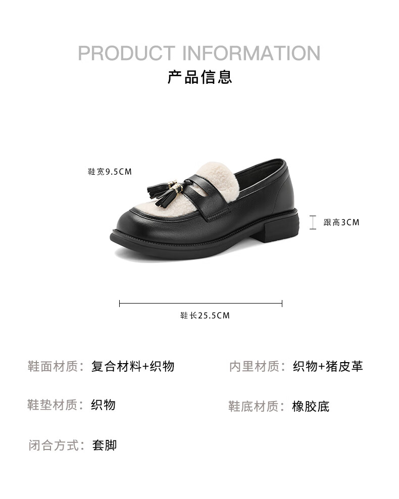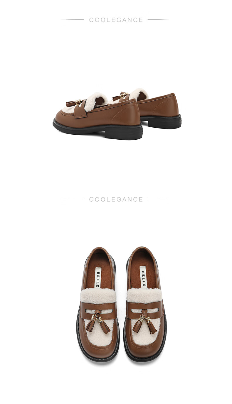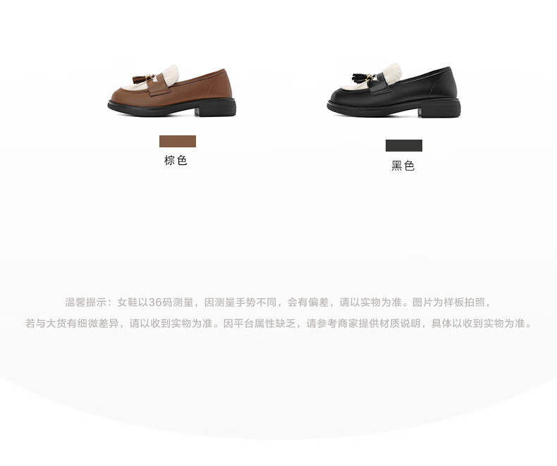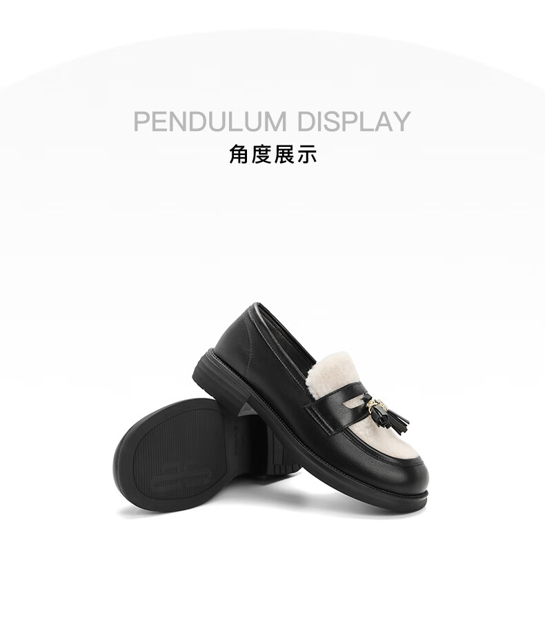 百丽气质乐福鞋女2023秋季新款复古英伦风一脚蹬小皮鞋B1504DA3 黑色 34