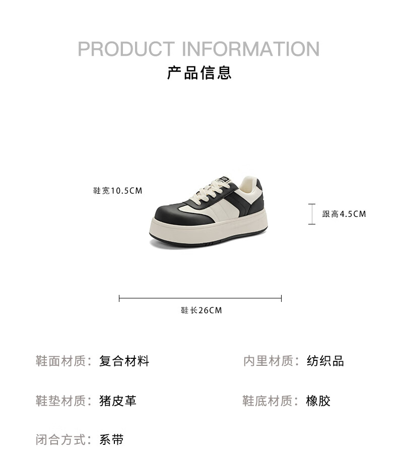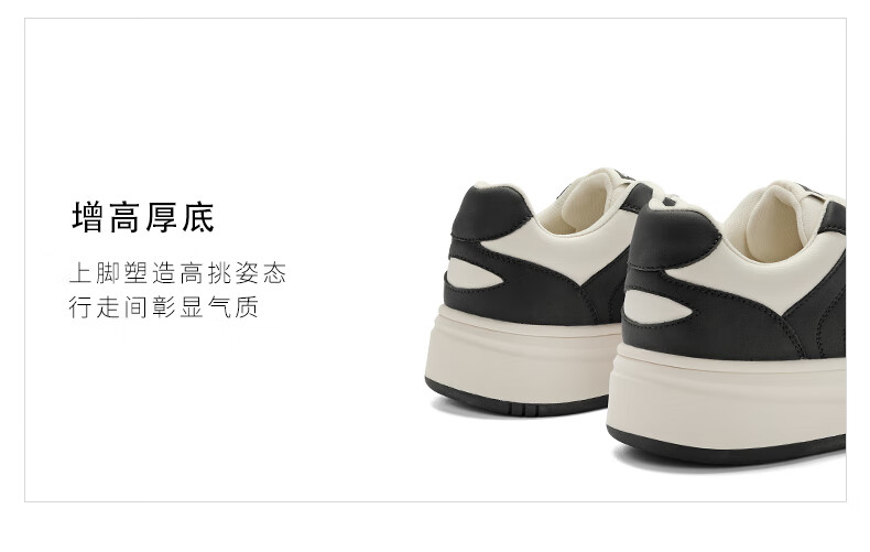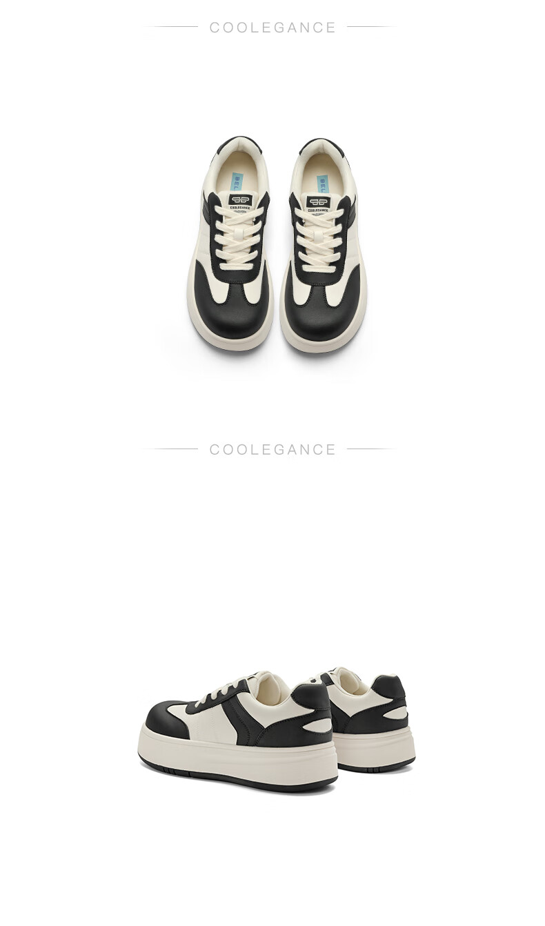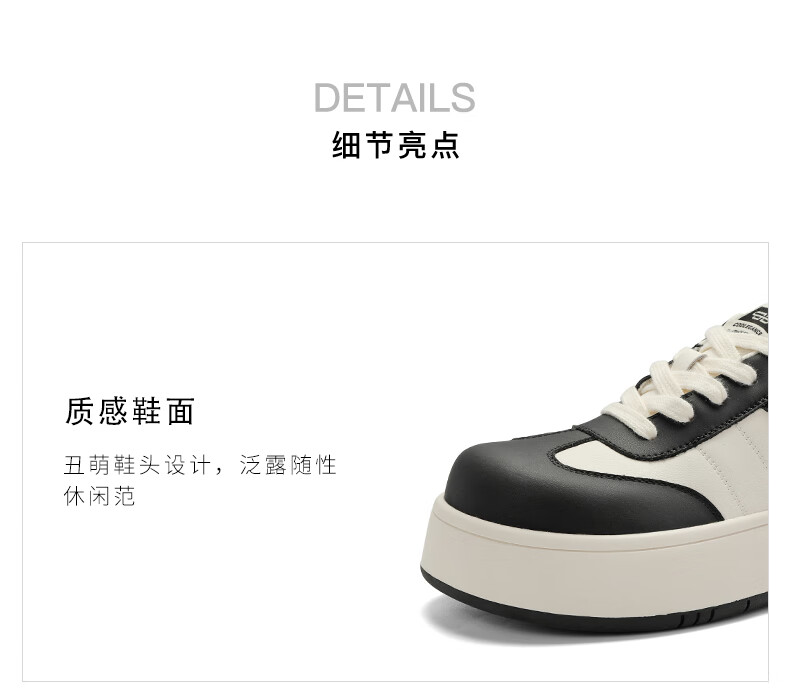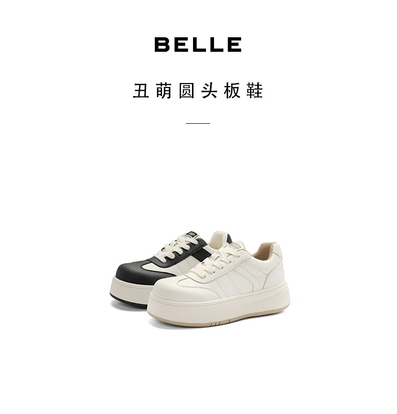 百丽撞色百搭板鞋女2023秋季新款丑萌圆头休闲面包鞋B1567CM3预售 黑色 35