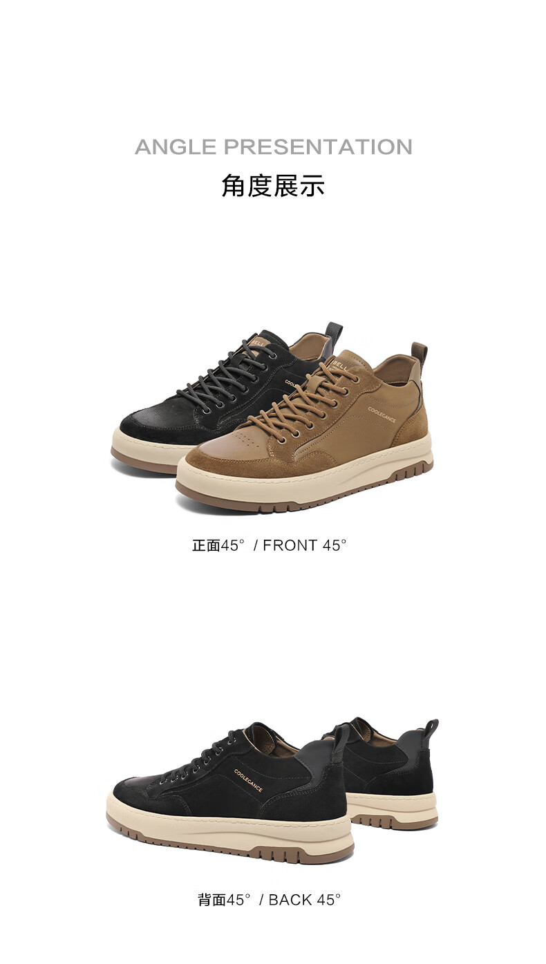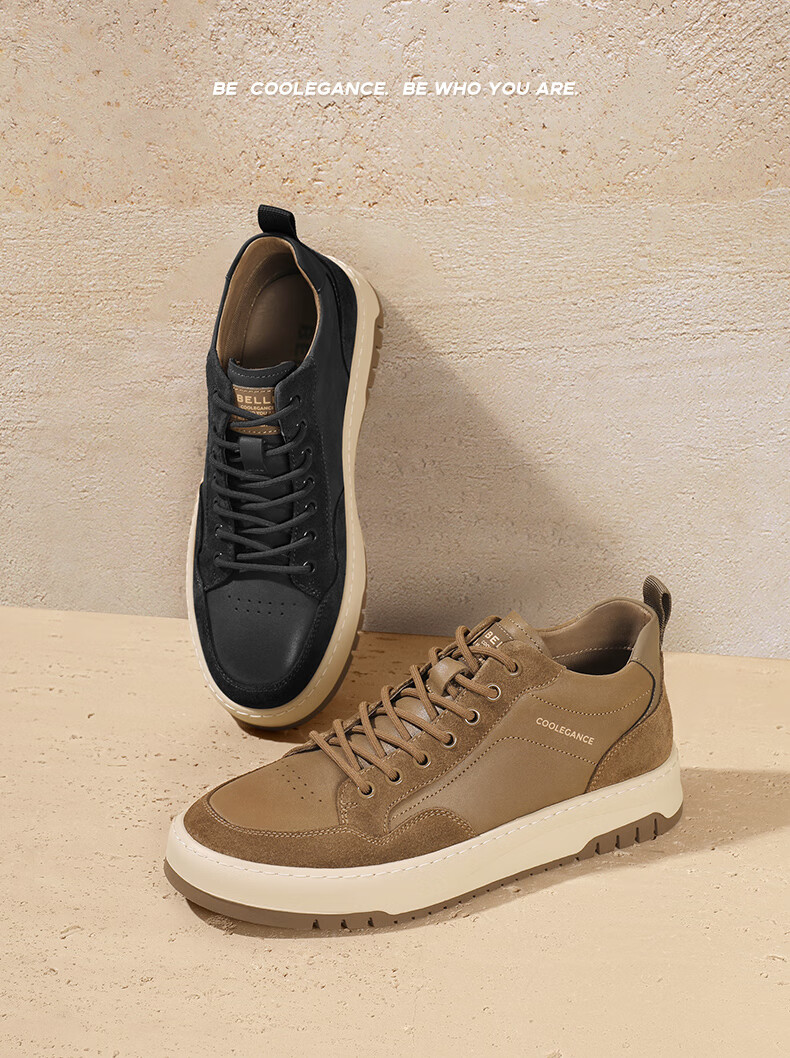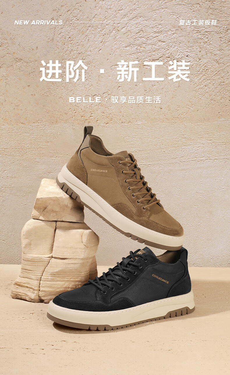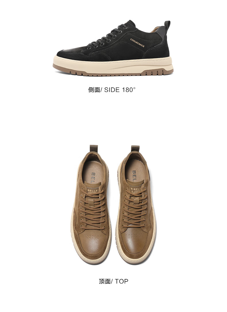 百丽时尚休闲鞋男2023冬季新商场同款皮革拼接高帮板鞋8CZ01DD3 黑色 38