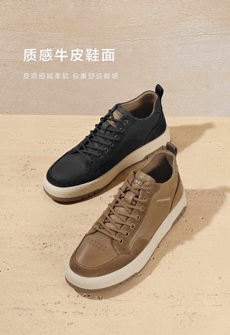 百丽牛皮商务休闲皮鞋男百搭马丁鞋子橡胶底86181CM0 黑 42