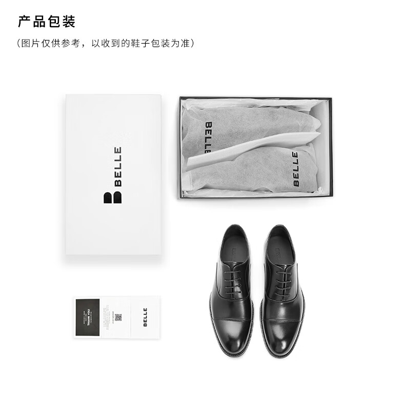 百丽牛皮商务休闲皮鞋男百搭马丁鞋子橡胶底86181CM0 黑 42