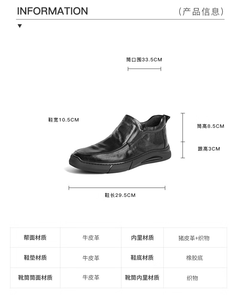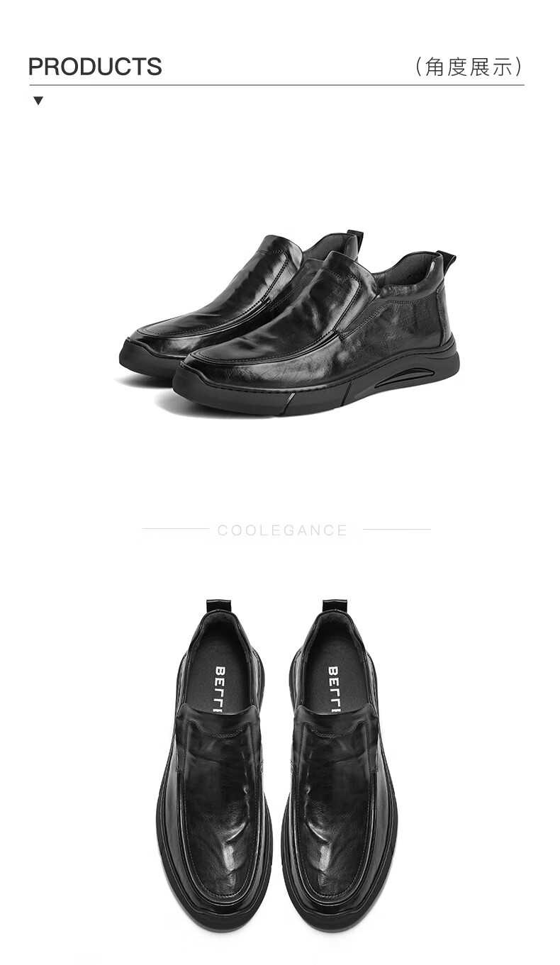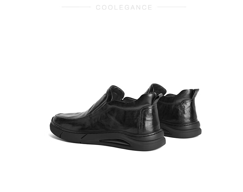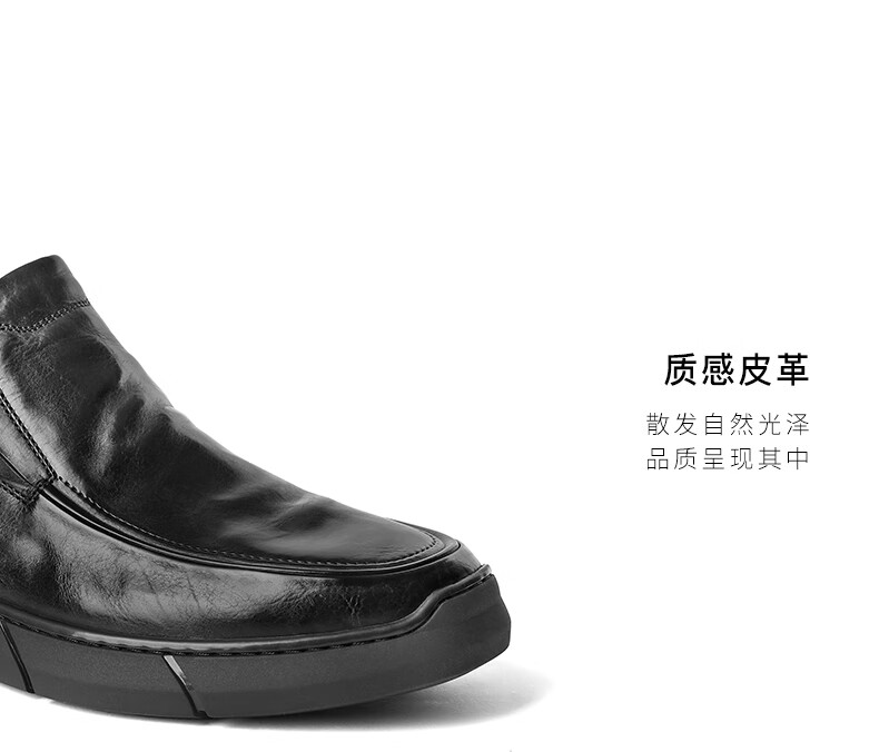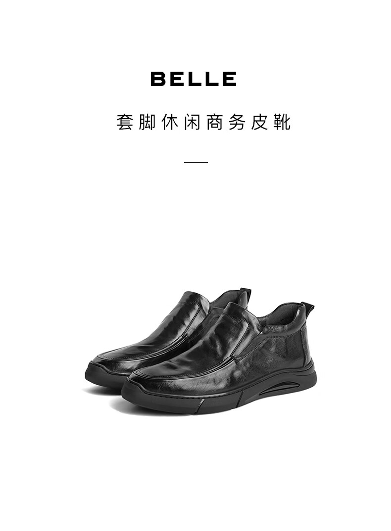 百丽一脚蹬休闲靴男2023冬季新商场同款牛皮商务休闲皮鞋8CG02DD3 黑色 38