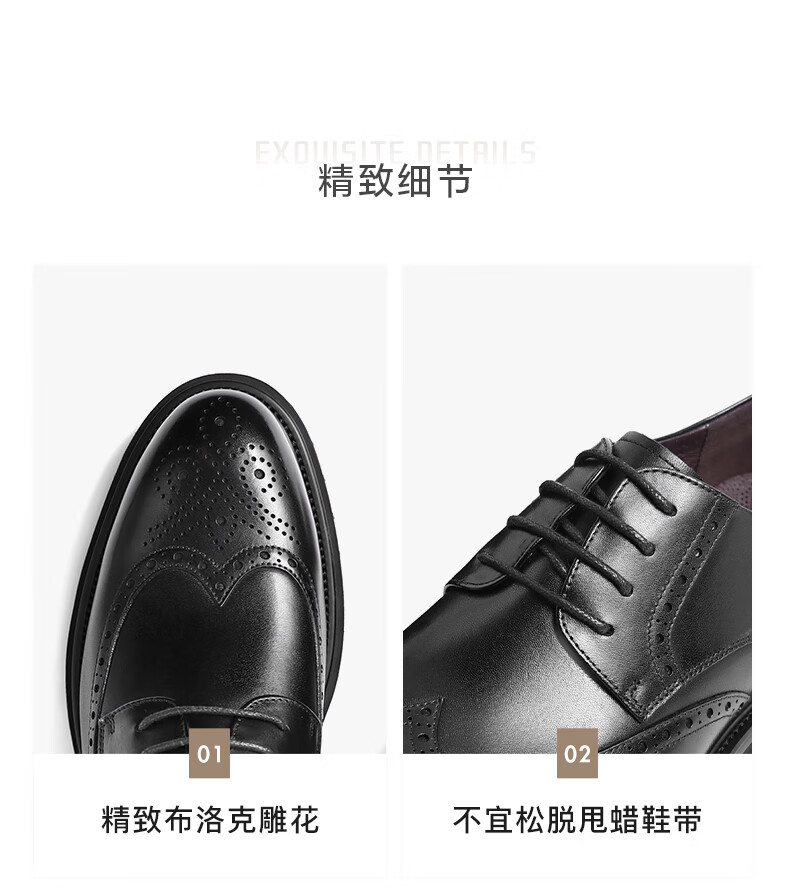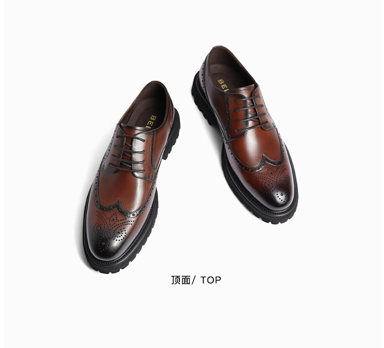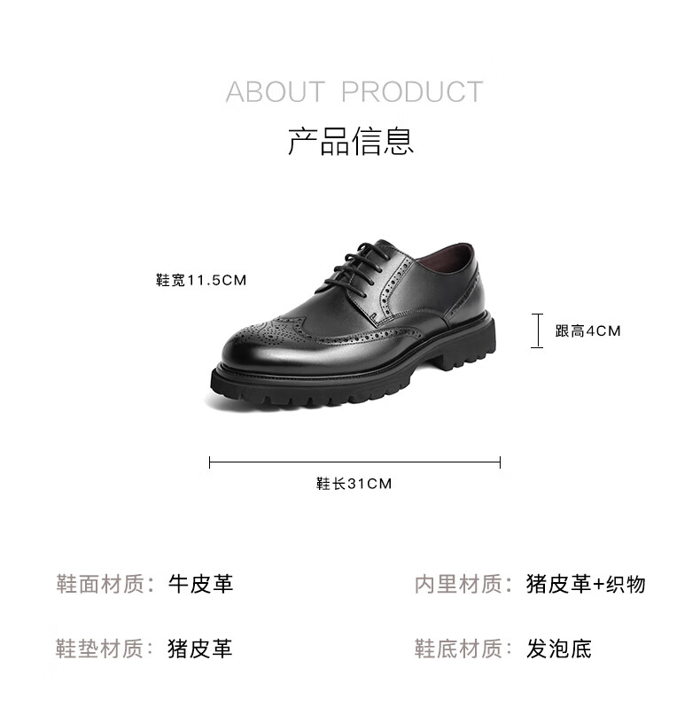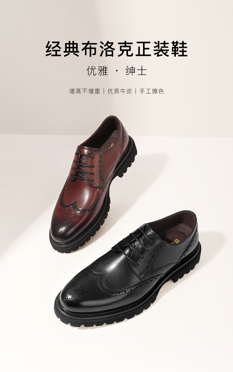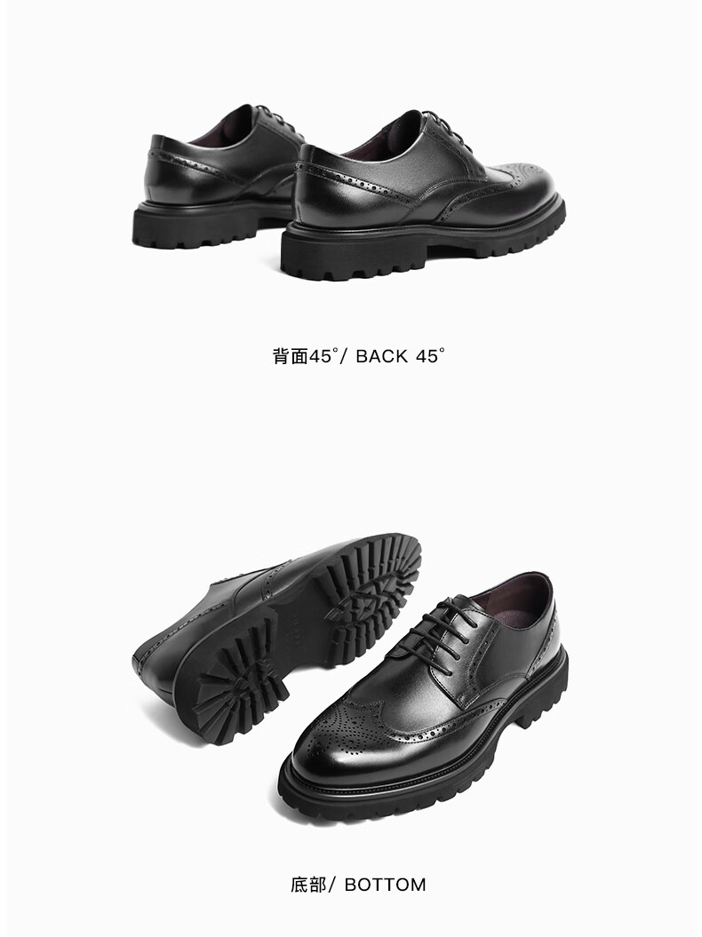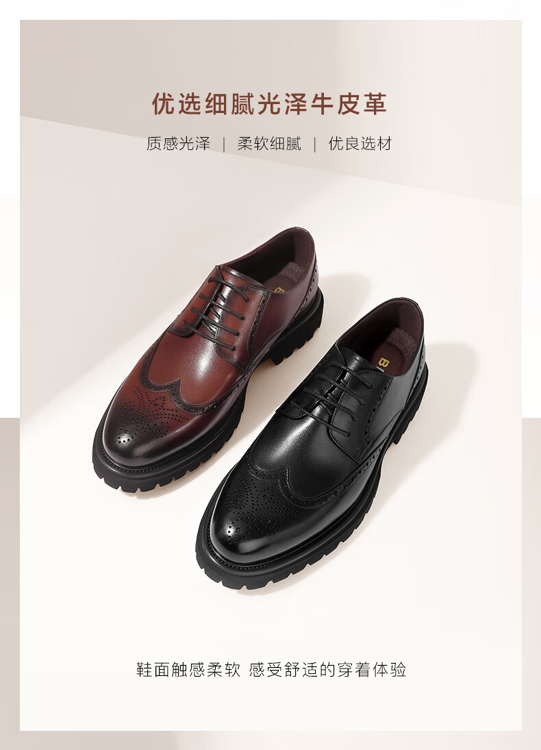 百丽商务正装鞋男2023春新牛皮革英伦风布洛克雕花皮鞋A0775AM3 黑色 41
