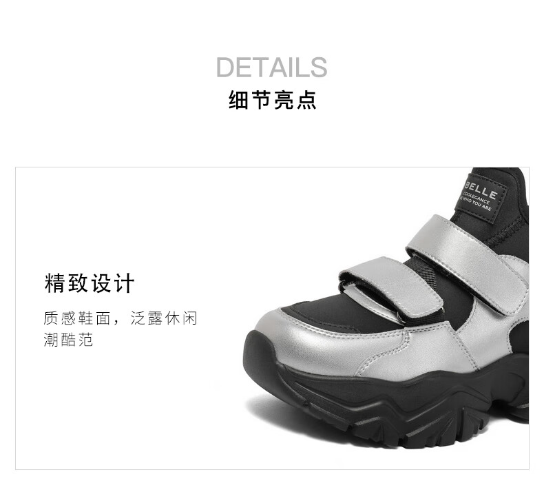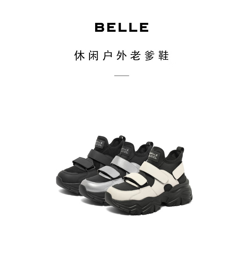 百丽潮酷出街老爹鞋女23冬季新款户外休闲鞋B1509DM3 米白 34