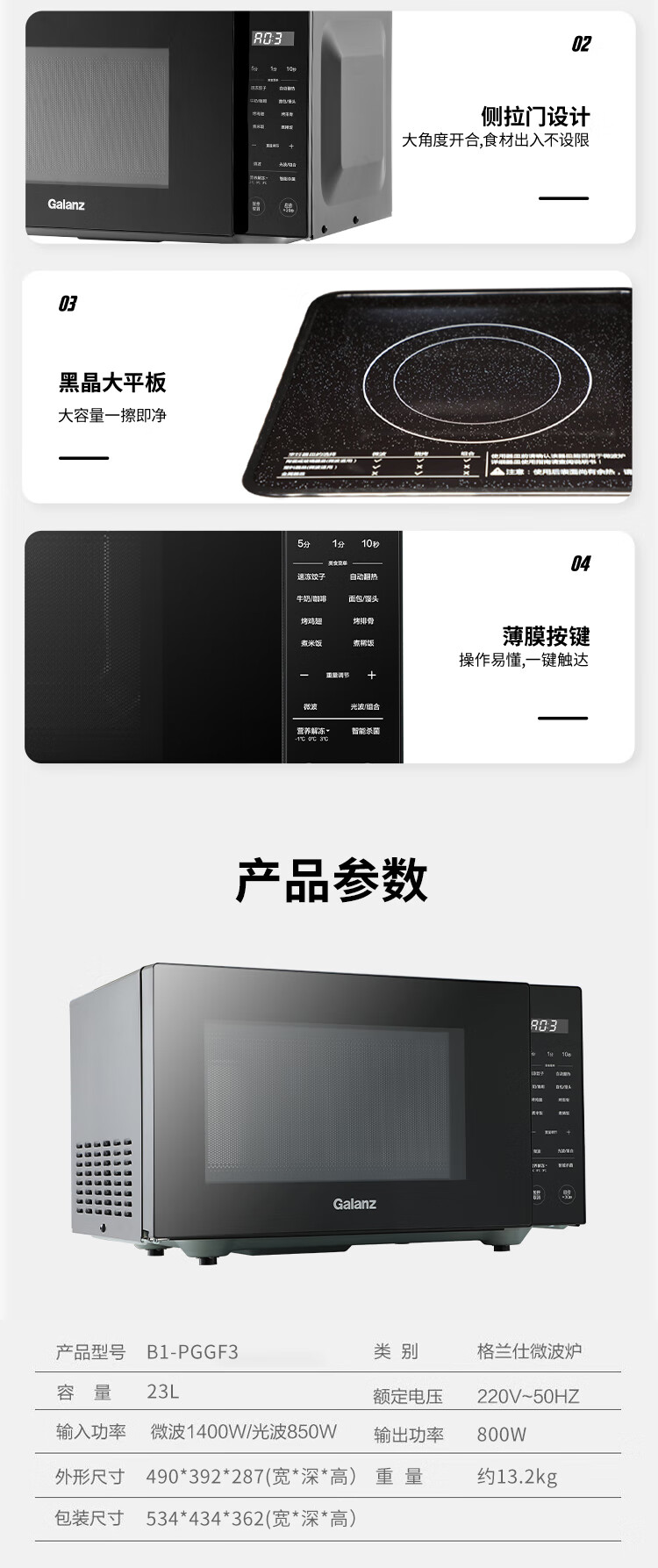 格兰仕(Galanz)微波炉家用不锈钢内胆光波炉智能菜单B1-PGGF3