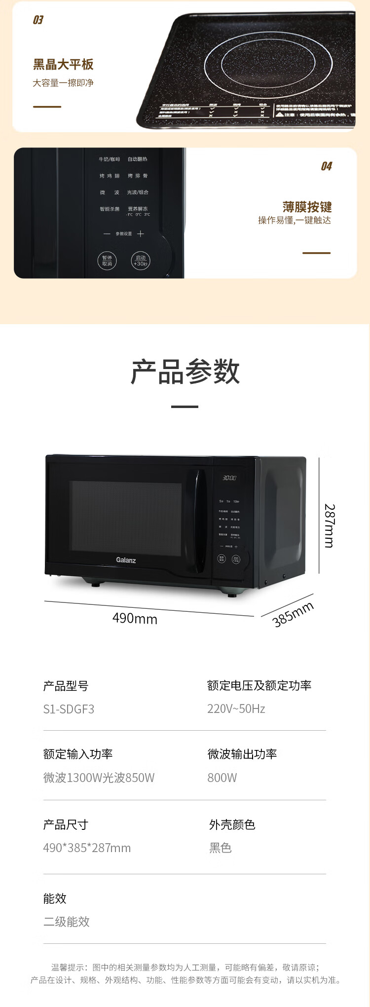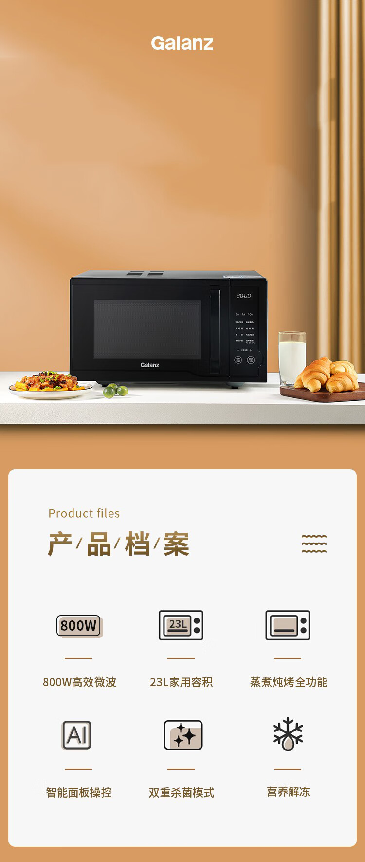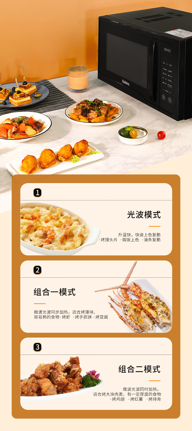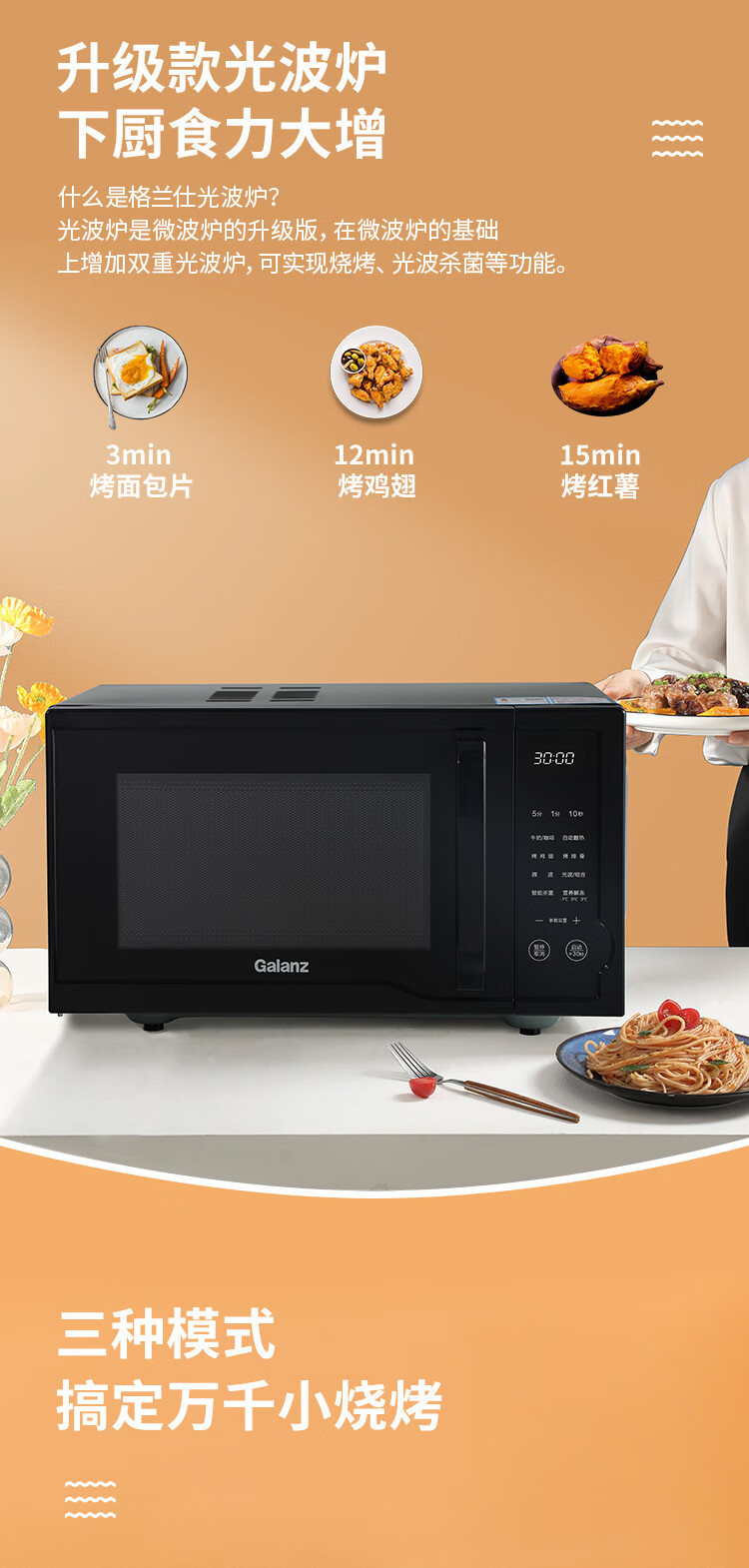 格兰仕(Galanz)微波炉家用不锈钢内胆光波炉智能菜单S1-SDGF3