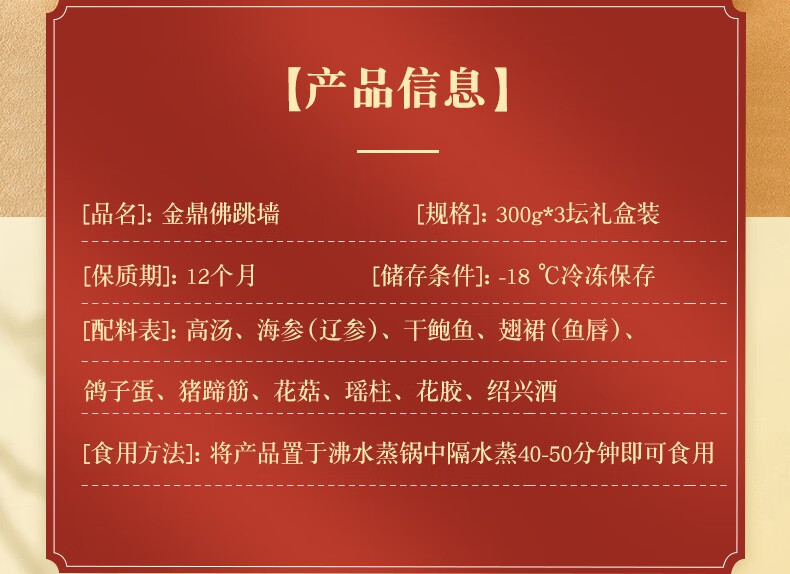 聚春园官方福州至尊金鼎佛跳墙三坛装高端礼盒加热即食海参鲍鱼中秋送礼 金鼎300g*3(礼盒装)