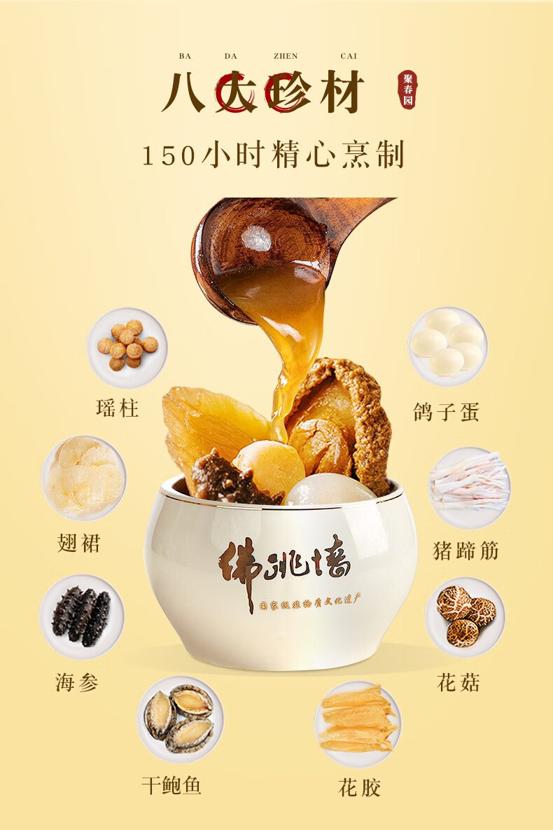 聚春园官方经典传统佛跳墙盒装海参鲍鱼花胶加热即食盆菜正宗佛跳墙礼盒 瑞鼎佛跳墙1.3kg盒装