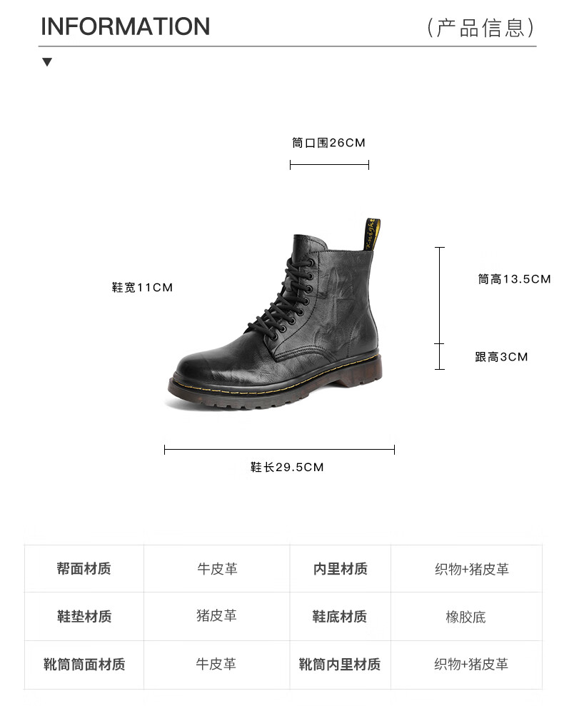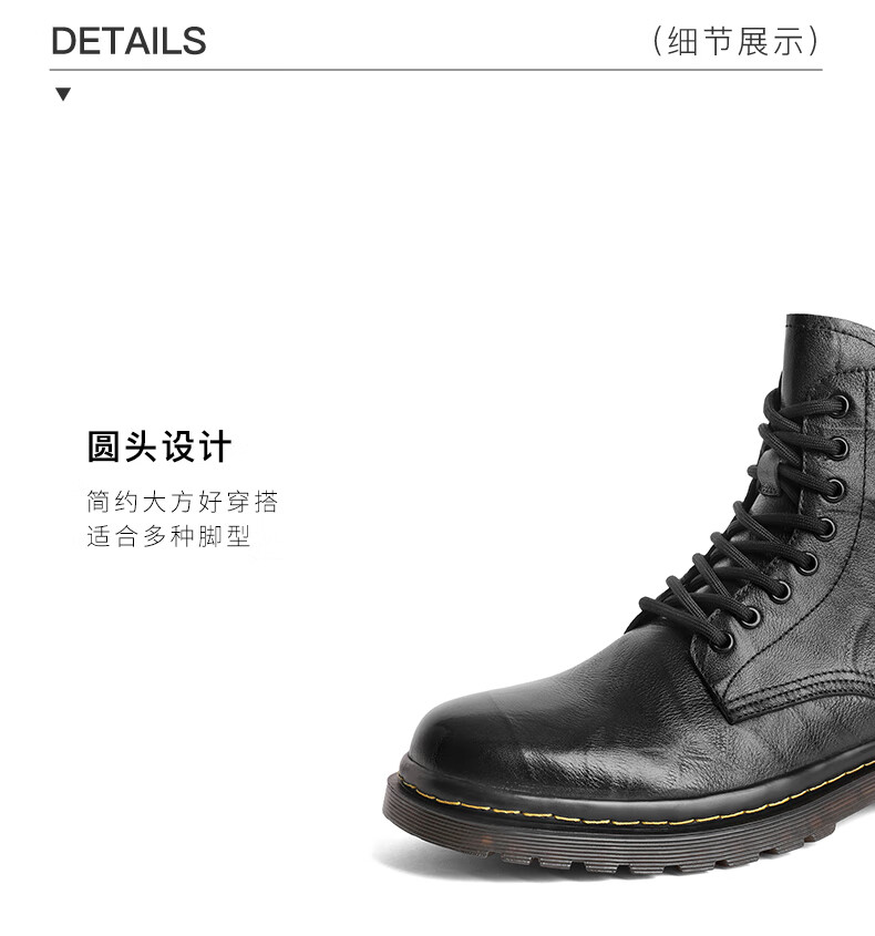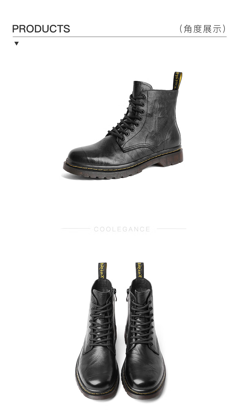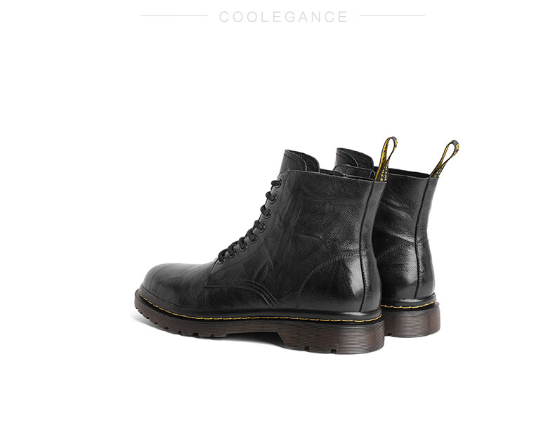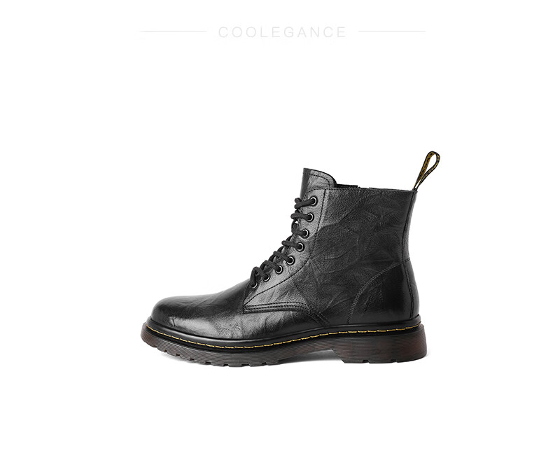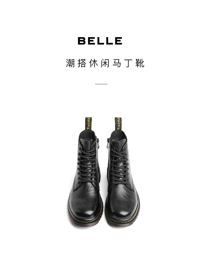 百丽潮搭马丁靴男2023冬季新款商场同款牛皮褶皱英伦风工装靴8CM01DD3 黑色 38