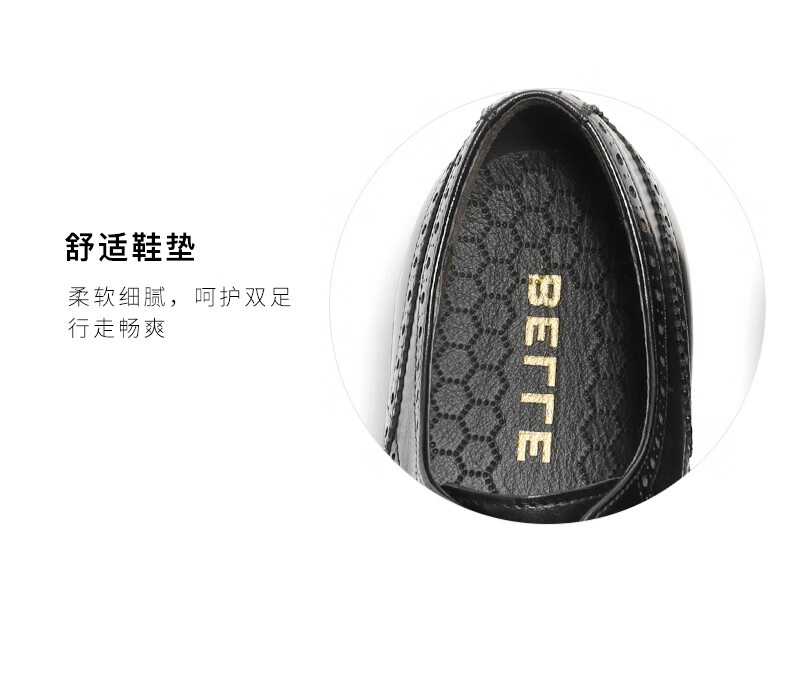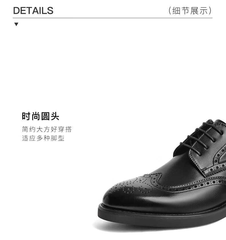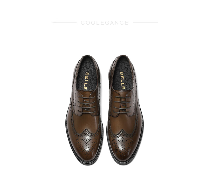 百丽布洛克雕花商务鞋男2023冬季新商场同款牛皮正装皮鞋8CD01DM3 黑色 40
