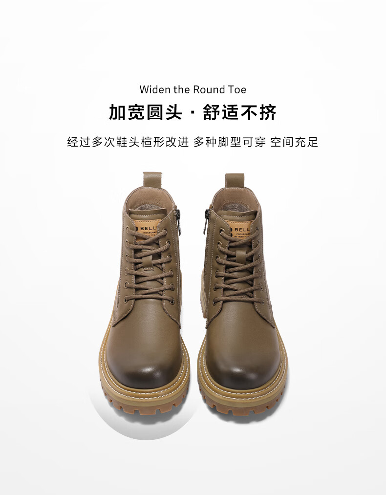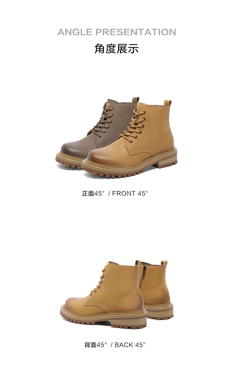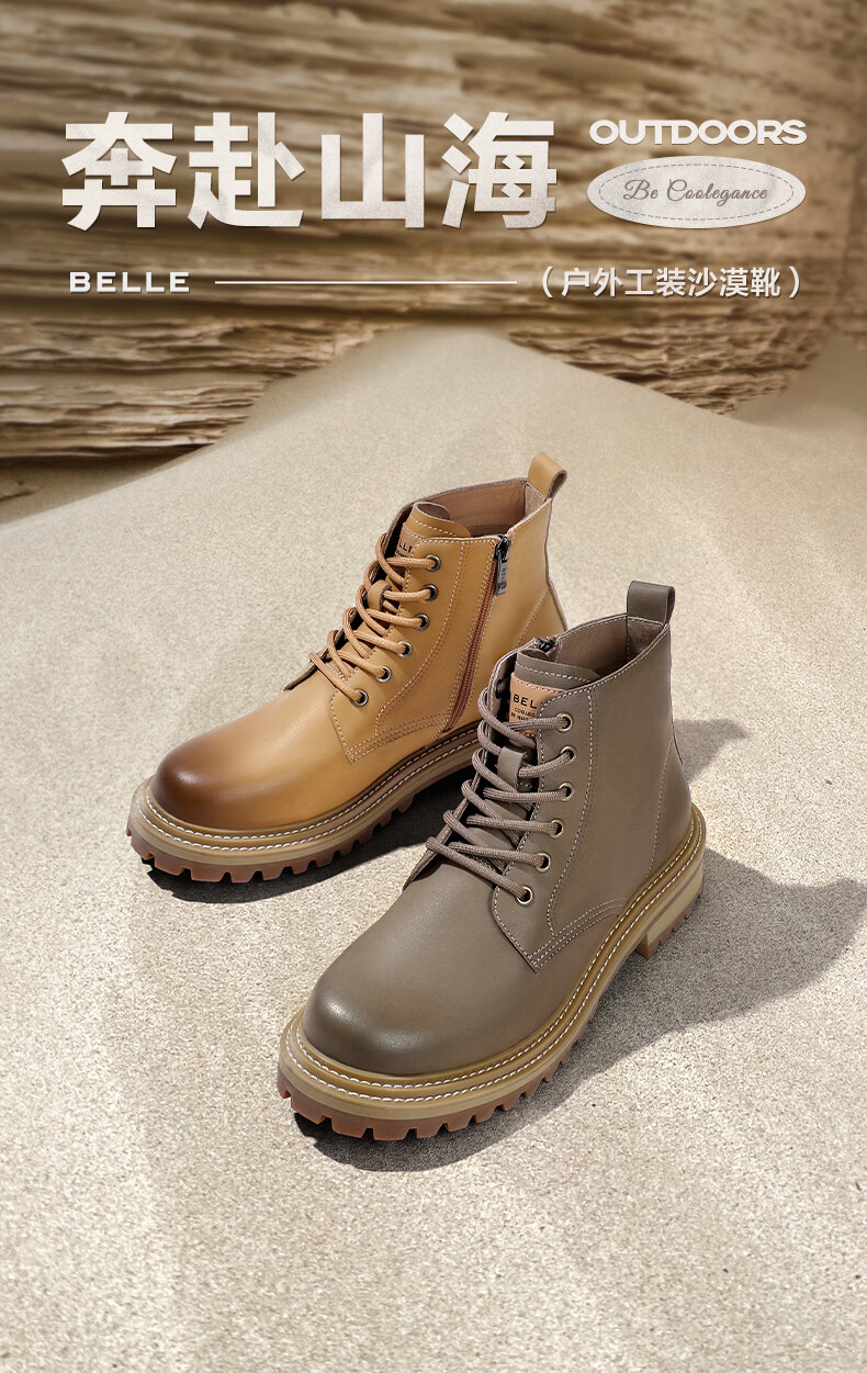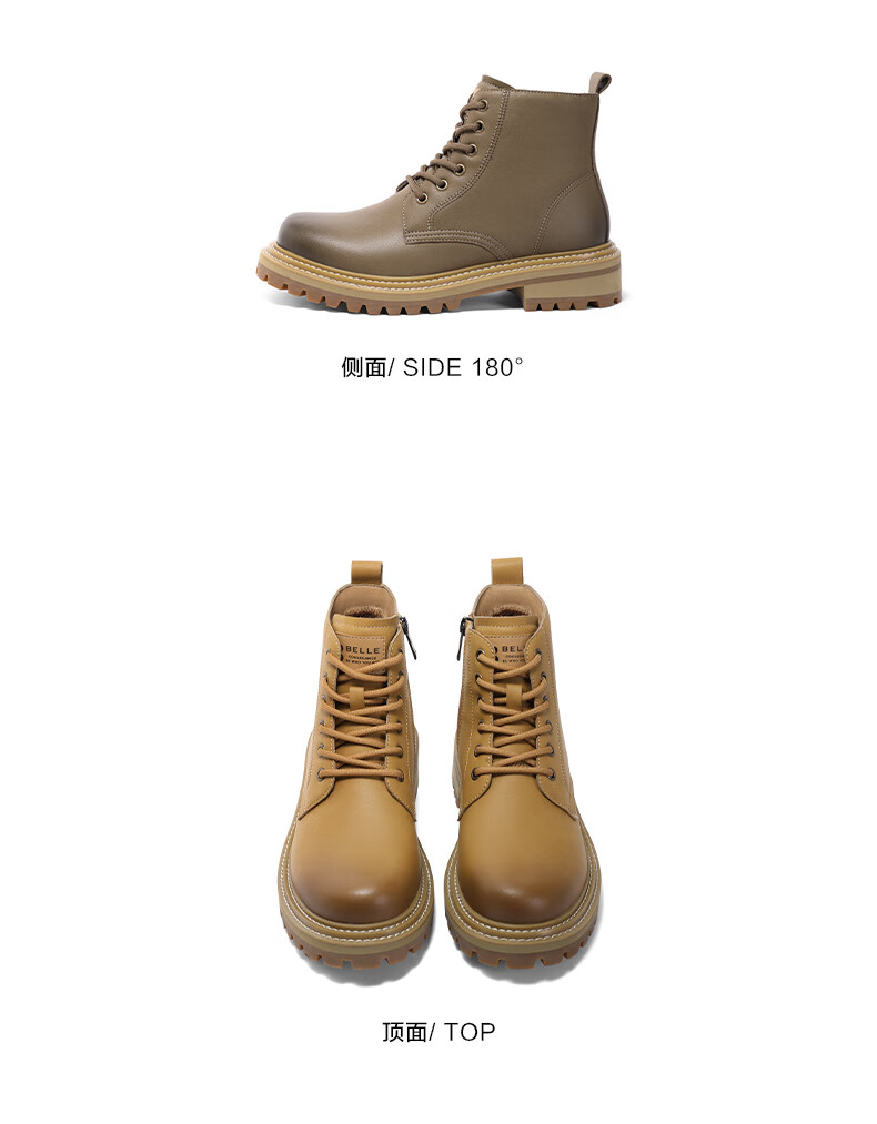 百丽时尚工装靴男2023冬季新户外潮搭大黄靴休闲短靴加绒A1273DD3 黄色-单里 38