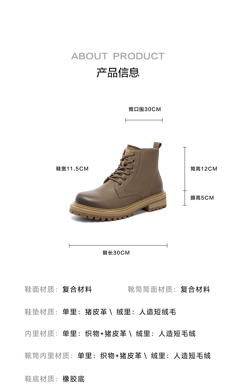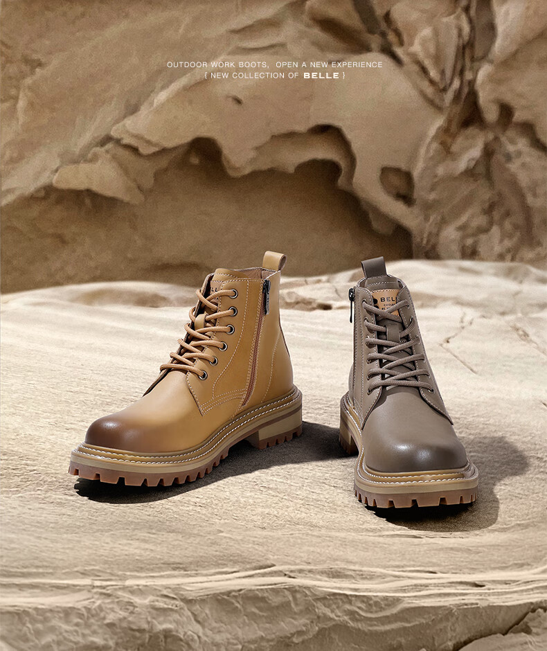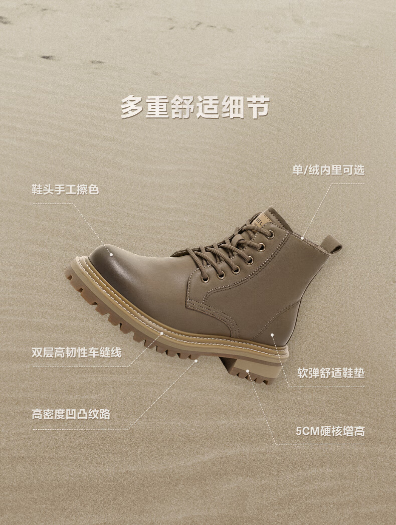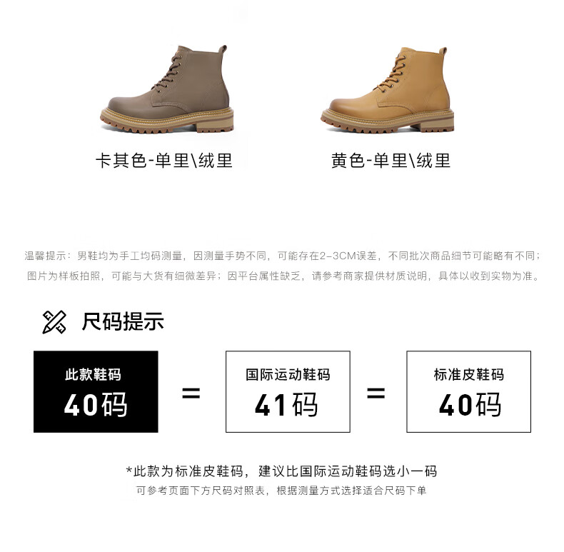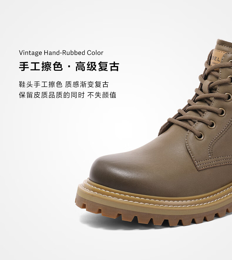 百丽时尚工装靴男2023冬季新户外潮搭大黄靴休闲短靴加绒A1273DD3 黄色-单里 38
