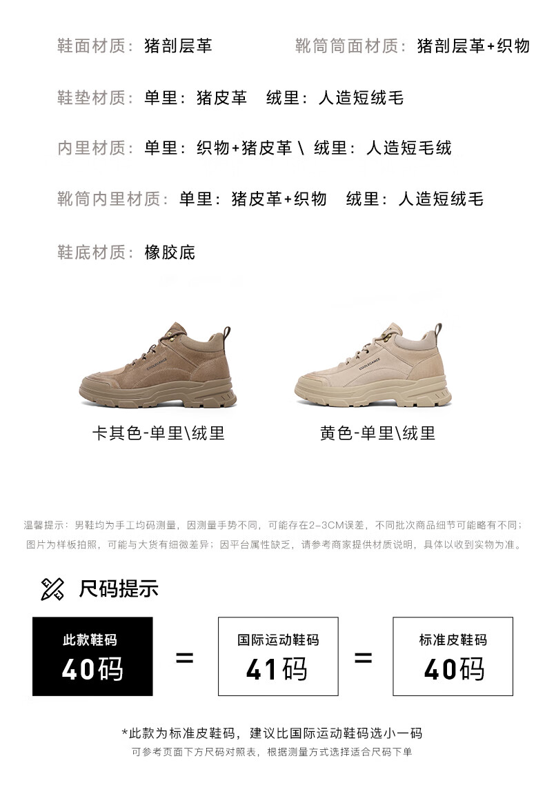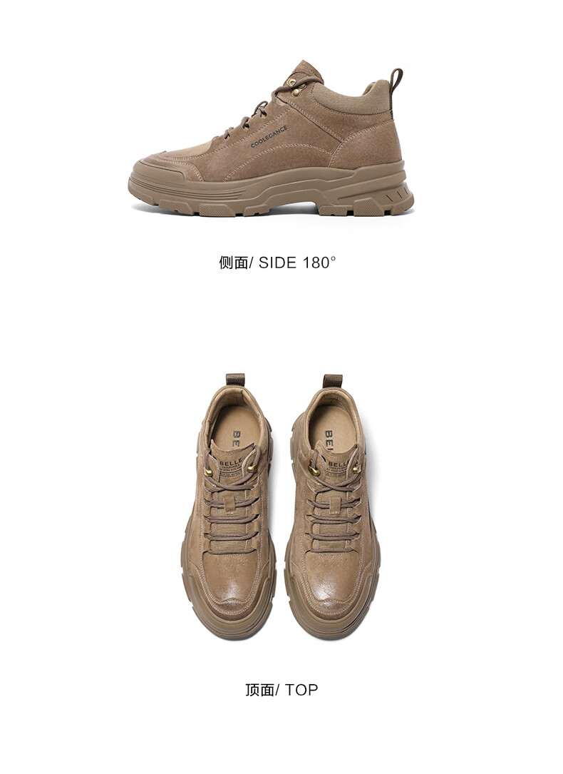 百丽休闲靴男2023冬季新徒步沙漠靴登山鞋户外工装靴加绒A1257DD3预售 啡色-单里 38