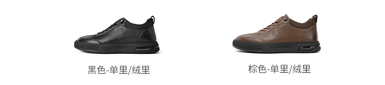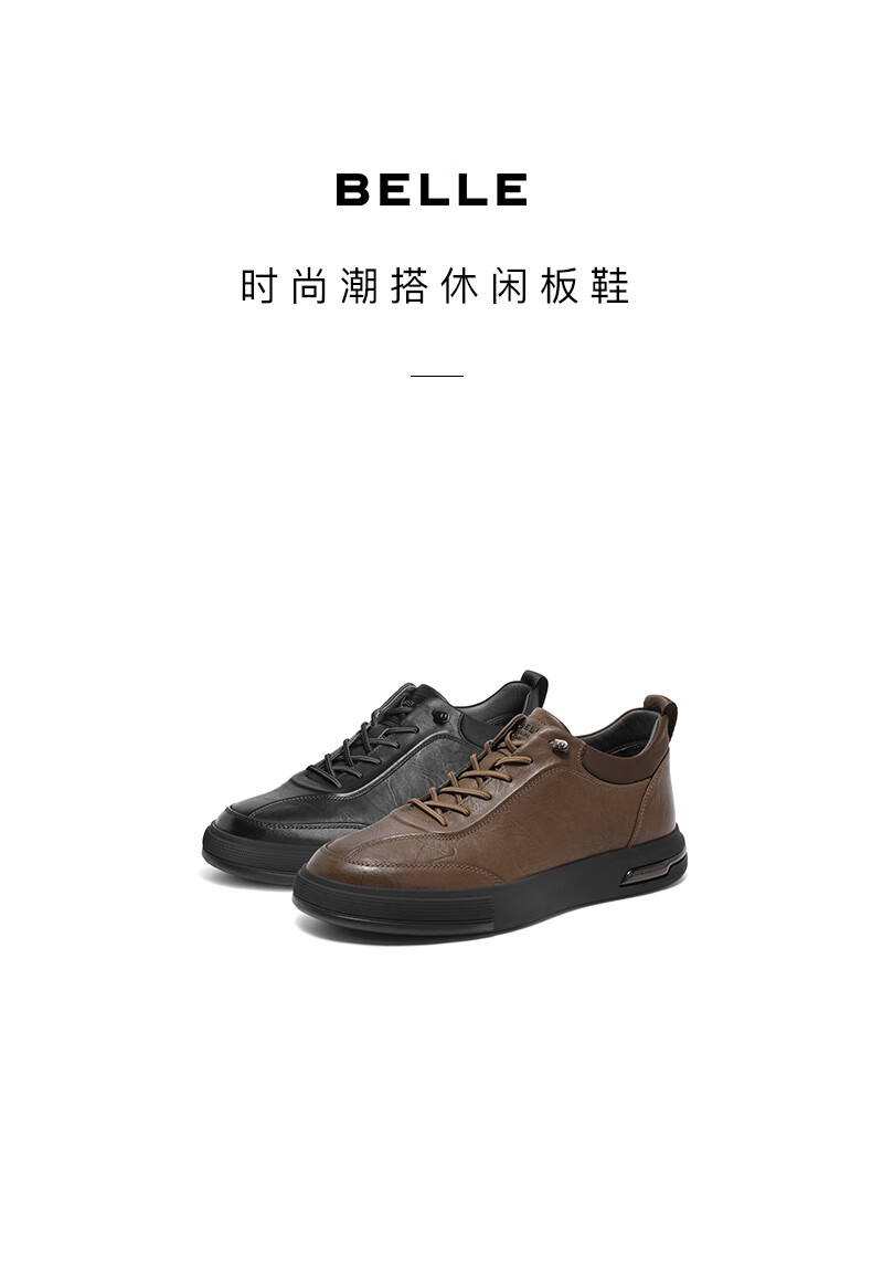 百丽时尚休闲鞋男2023秋新商场同款牛皮革免系带板鞋加绒8CR01DM3预售 黑色-单里 38