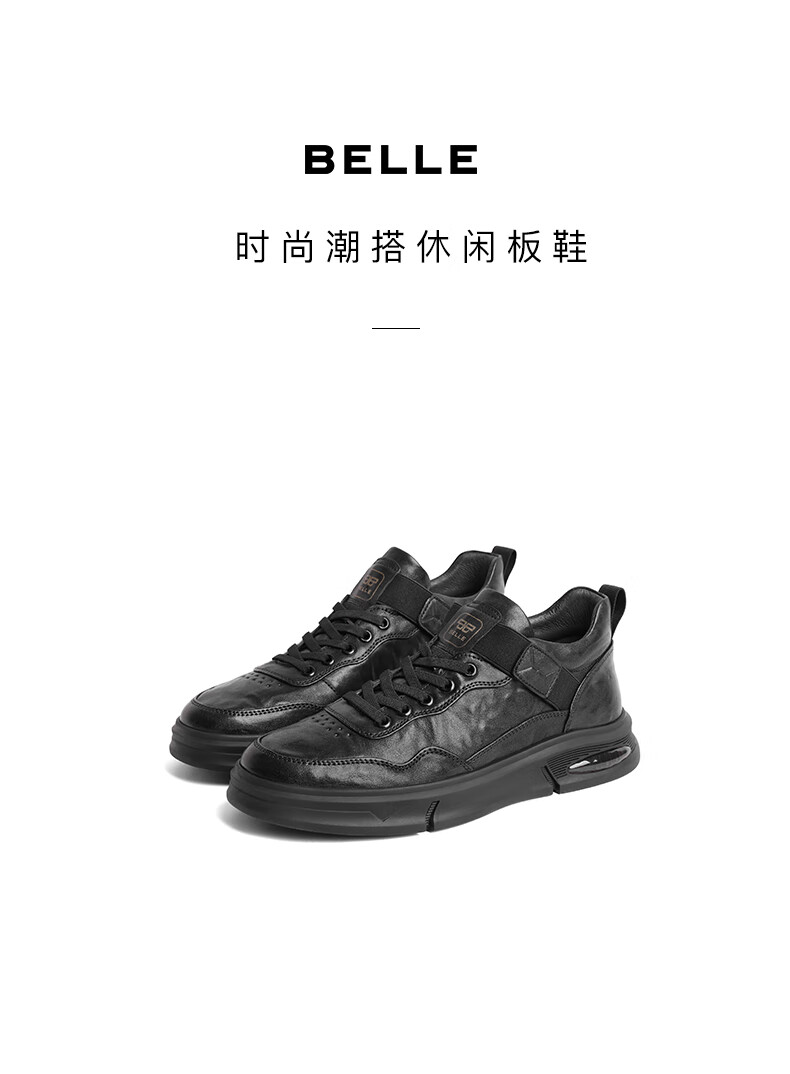 百丽时尚休闲鞋男2023冬季新商场同款牛皮高帮板鞋加绒8CU01DD3预售 黑色-绒里 44
