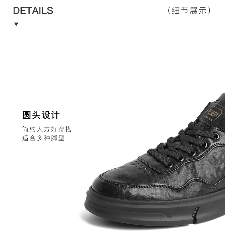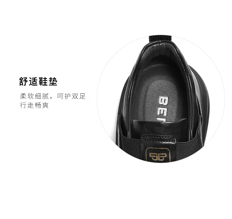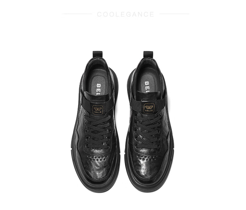 百丽牛皮商务休闲皮鞋男百搭马丁鞋子橡胶底86181CM0 黑 42