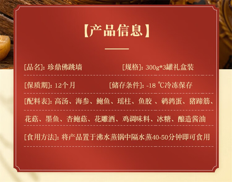 聚春园中华老字号 正宗福州佛跳墙珍鼎礼盒装 加热即食鲍鱼花胶福建送礼 珍鼎300g*1(带坛)
