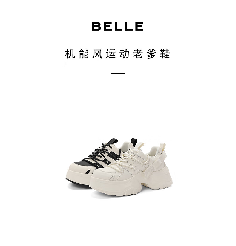 百丽厚底老爹鞋女2023秋季新款机能风运动休闲鞋B1570CM3预售 米色 34