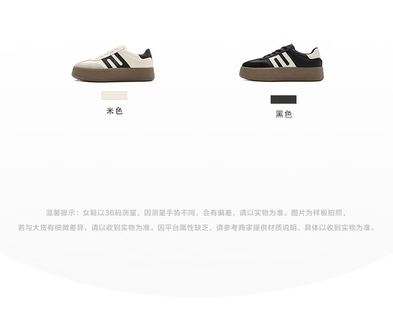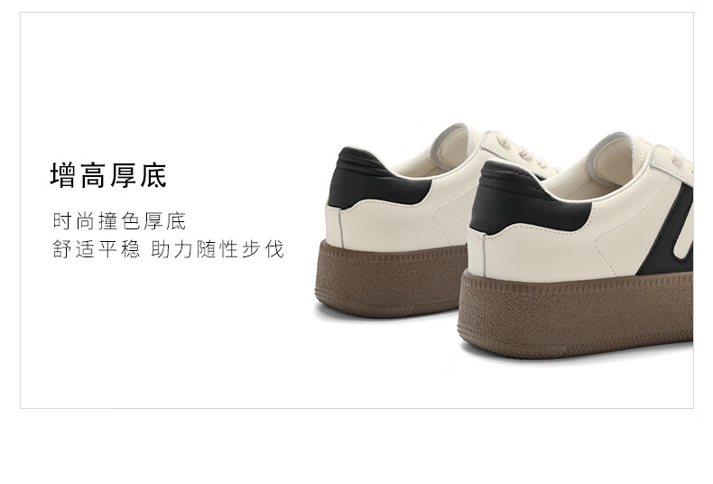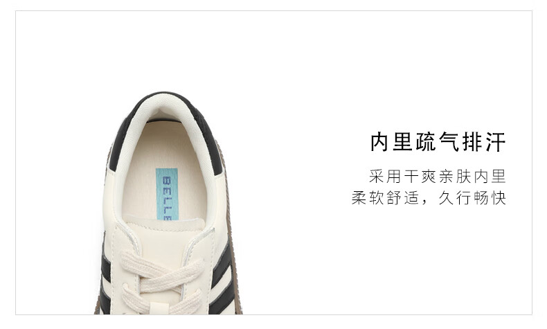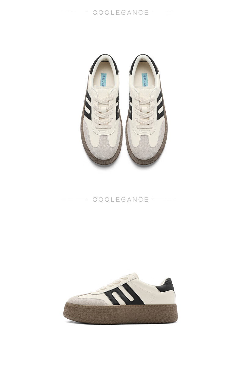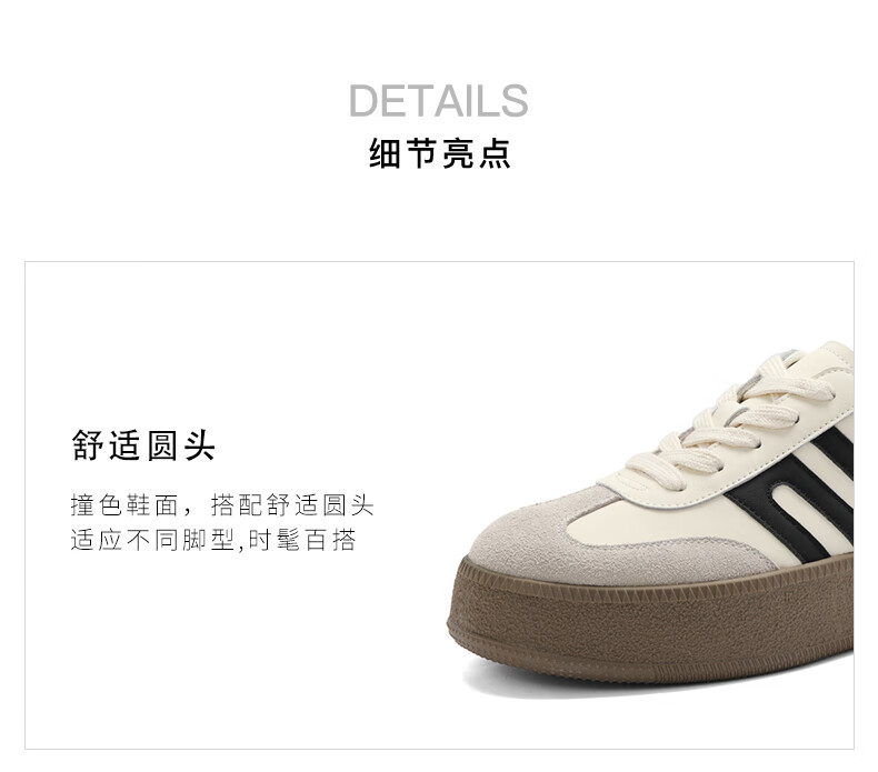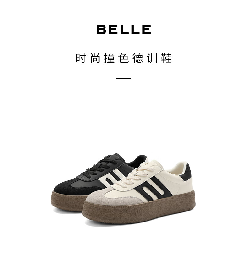 百丽复古百搭德训鞋女2023秋季新款厚底撞色休闲板鞋B1573CM3预售 米色 37