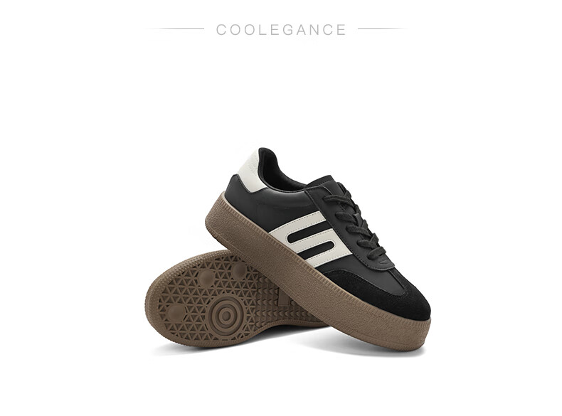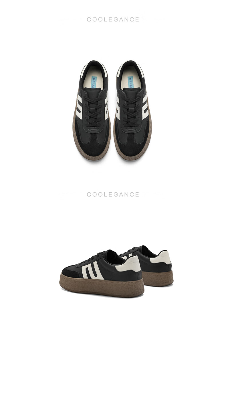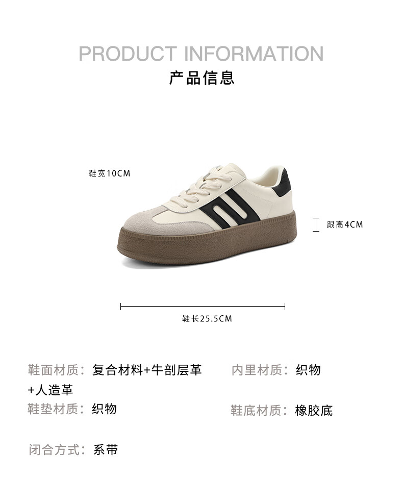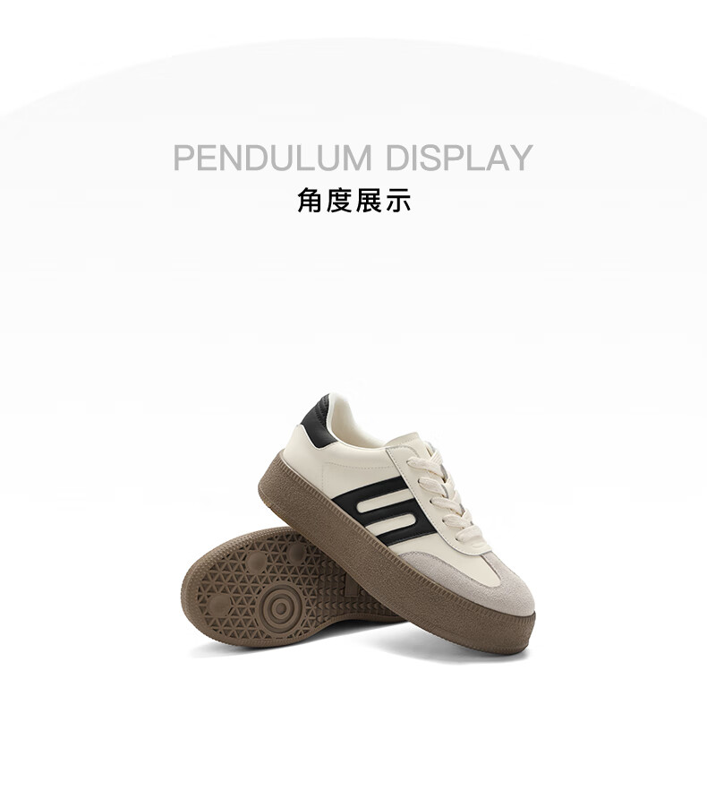 百丽复古百搭德训鞋女2023秋季新款厚底撞色休闲板鞋B1573CM3预售 米色 37
