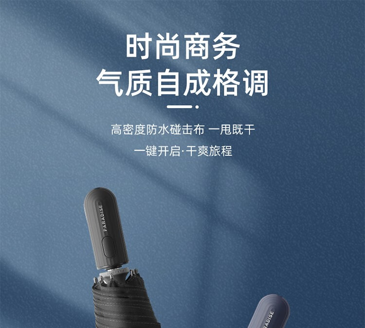 天堂伞全自动一键开收纯色三折叠便携商务风晴雨两用伞男女士 摩登灰