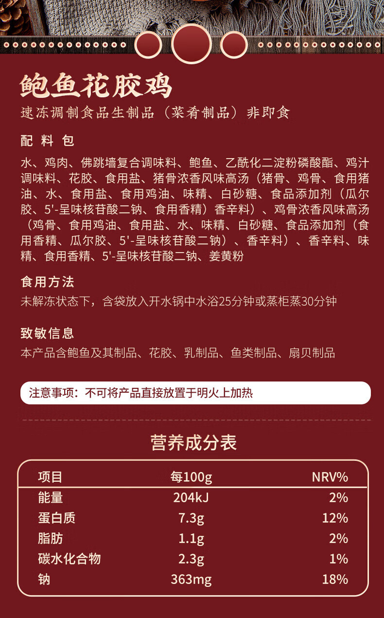 聚春园官方金汤鲍鱼花胶鸡加热即食佛跳墙食材火锅海鲜港式菜肴预制菜 鲍鱼花胶鸡1300g*1