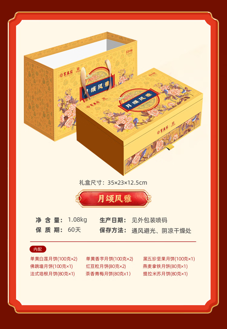 聚春园官方月饼礼盒装 玫瑰豆沙...