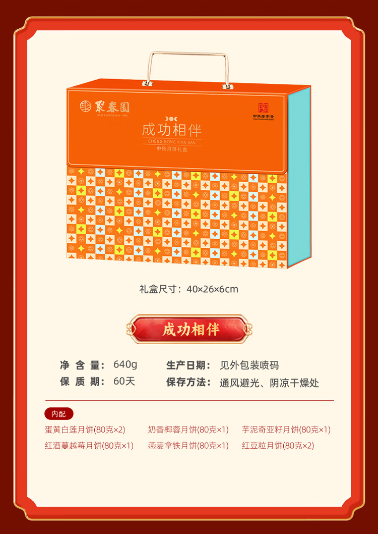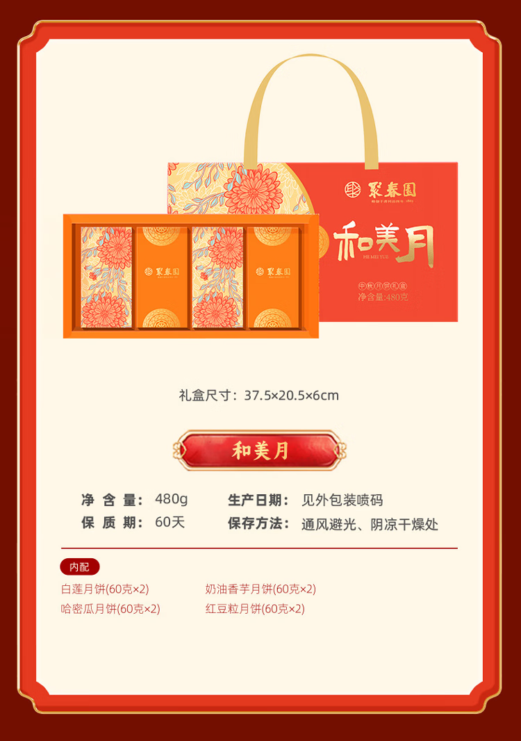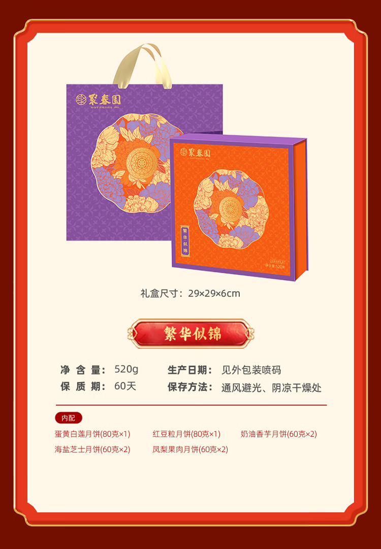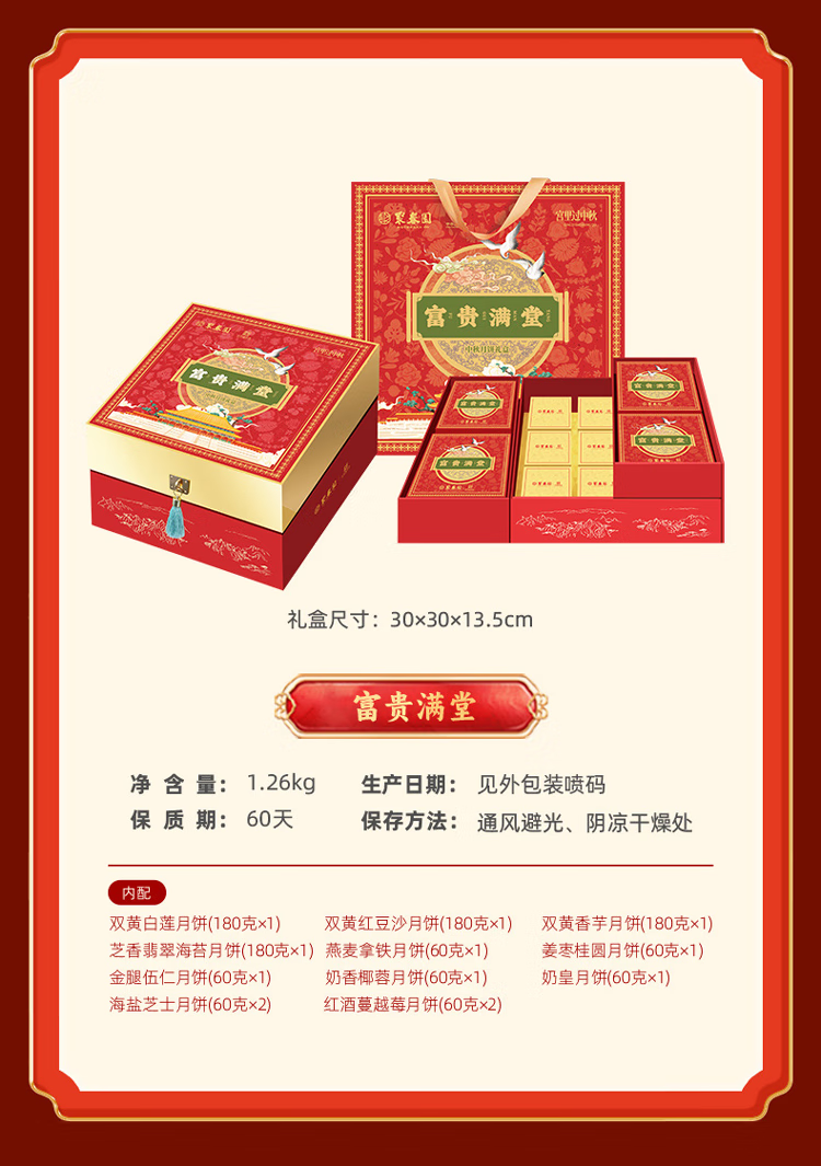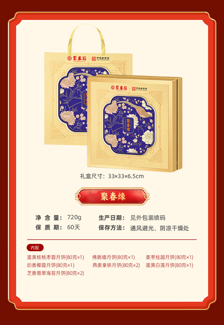 聚春园官方月饼礼盒装 玫瑰豆沙...