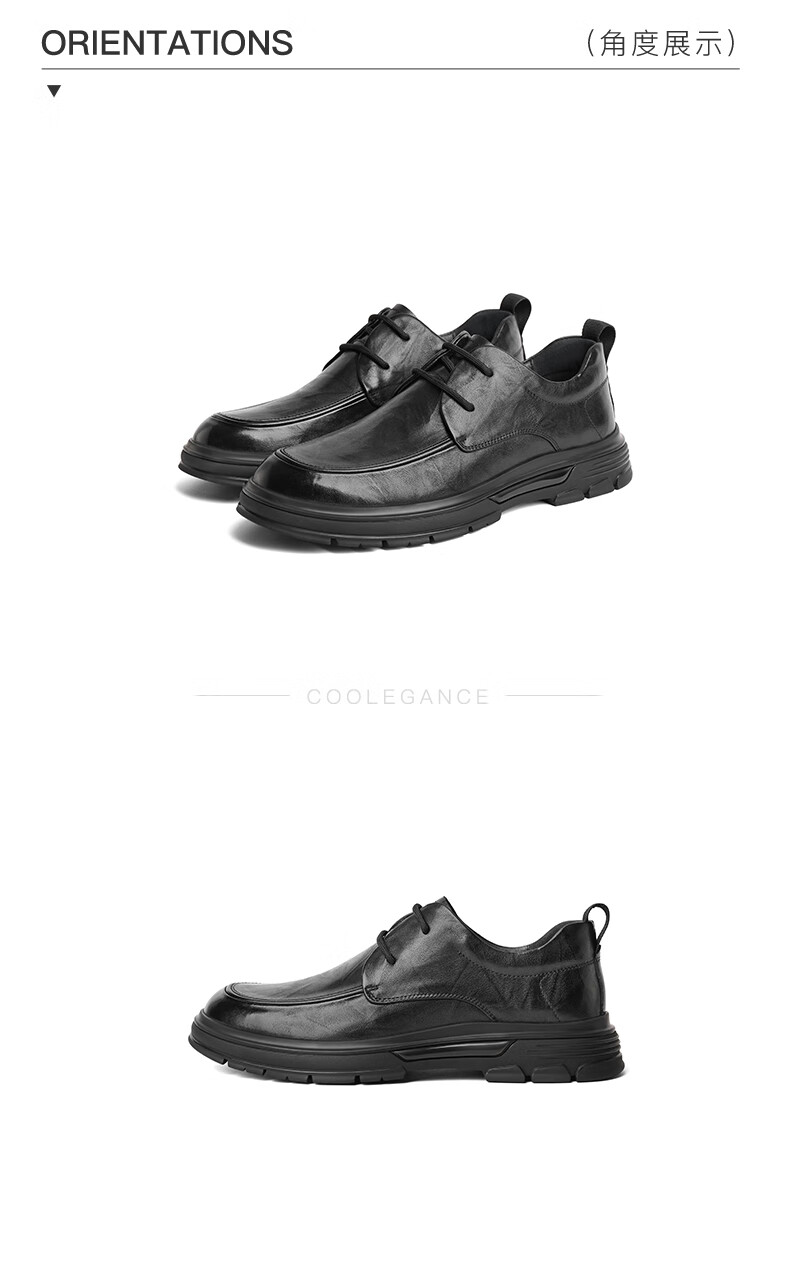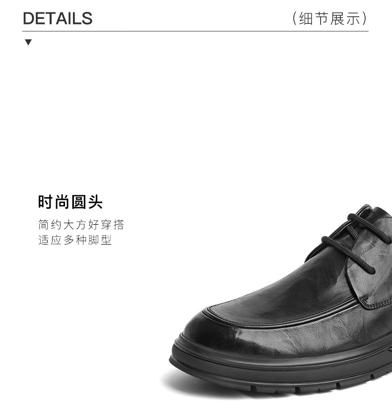 百丽时尚系带商务鞋男2023冬季新款牛皮革抓纹舒适休闲皮鞋8CF01DM3 黑色 38
