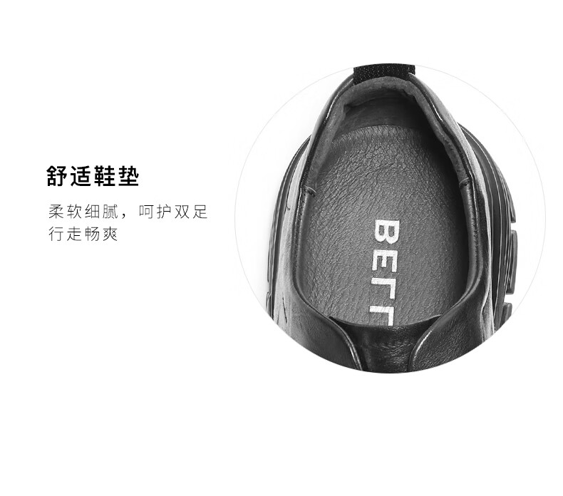 百丽牛皮商务休闲皮鞋男百搭马丁鞋子橡胶底86181CM0 黑 42