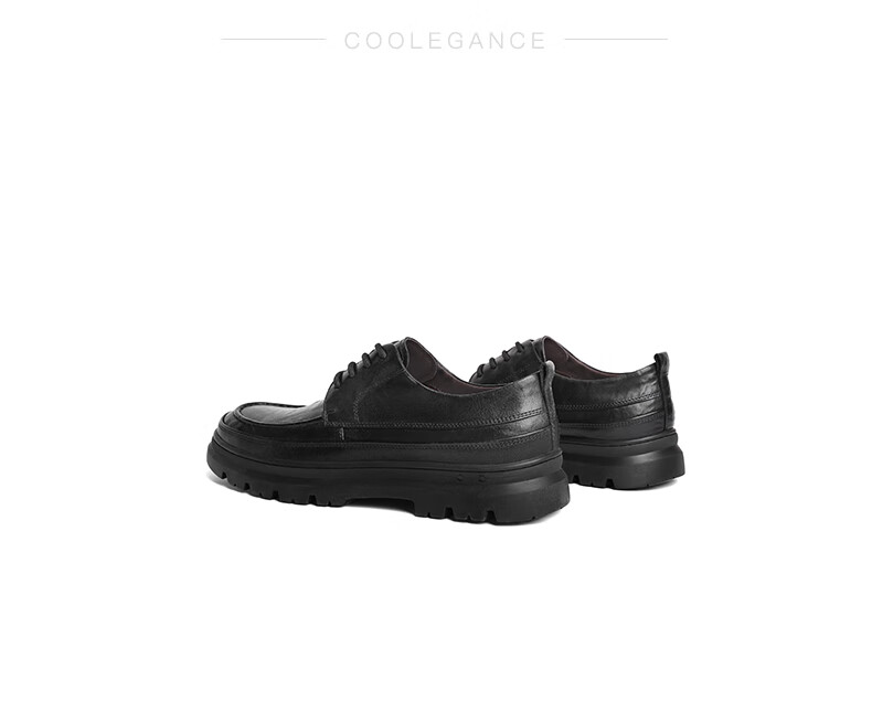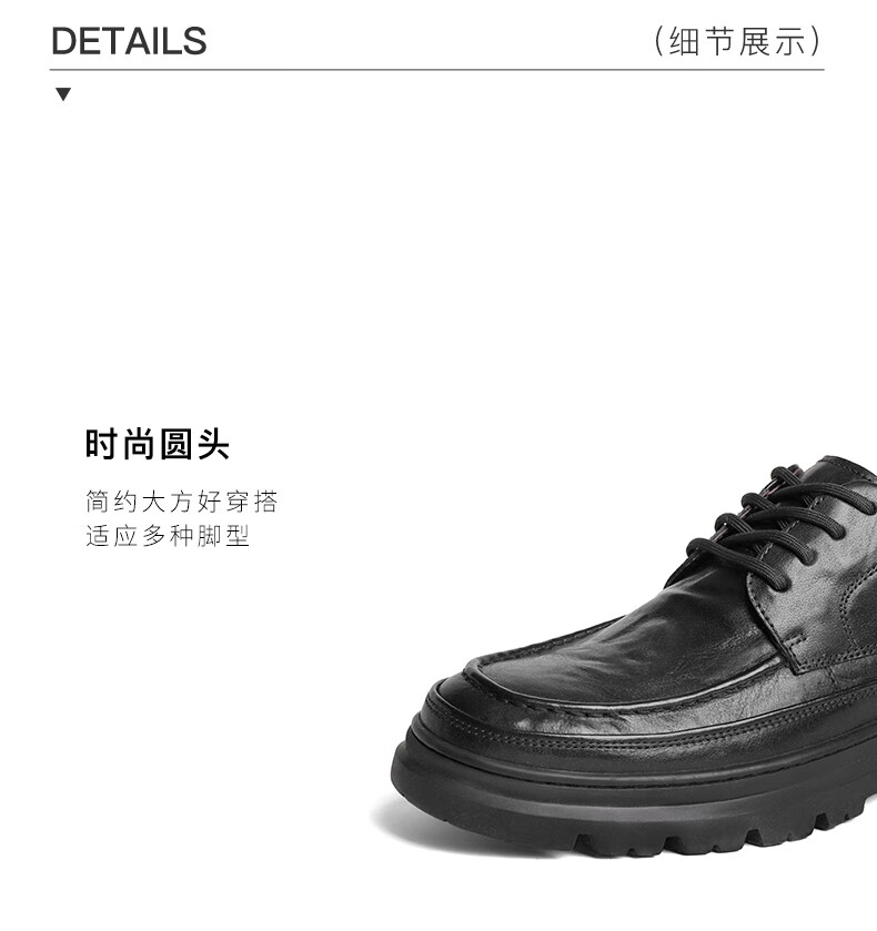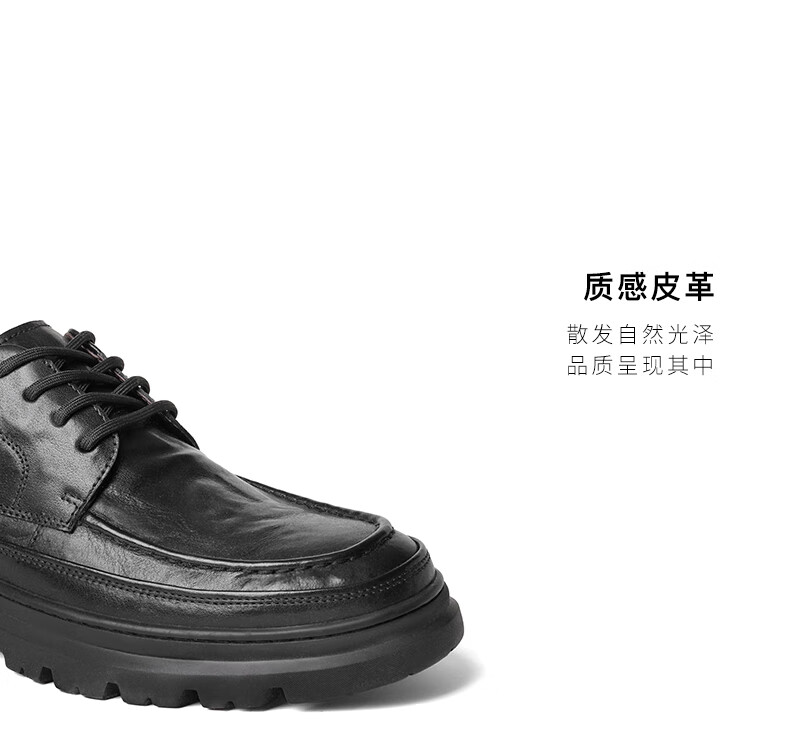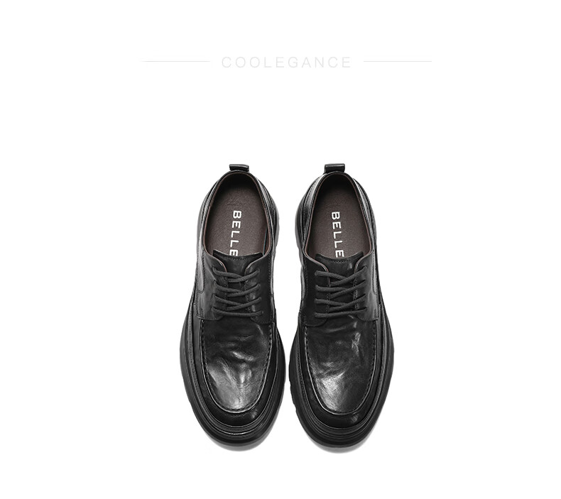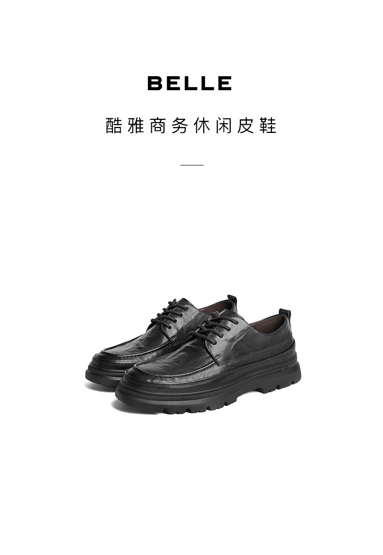 百丽时尚通勤商务鞋男2023冬季新牛皮褶皱质感休闲皮鞋D7X02DM3预售 黑色 38