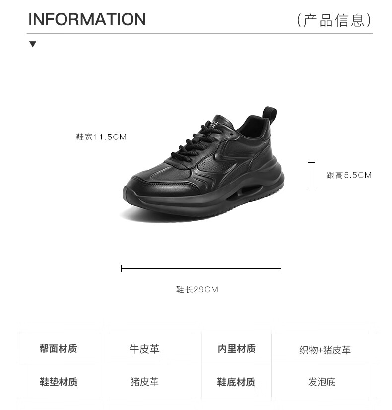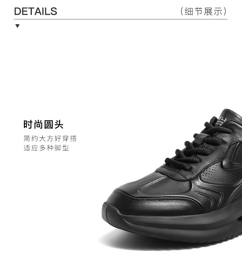 百丽牛皮商务休闲皮鞋男百搭马丁鞋子橡胶底86181CM0 黑 42