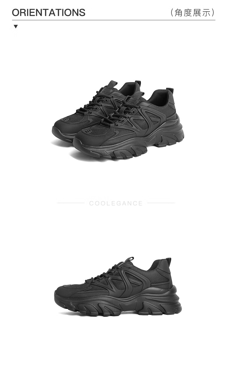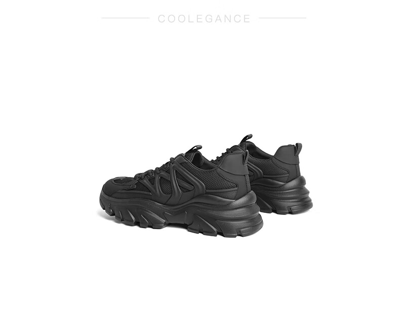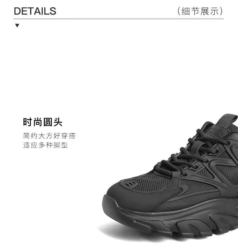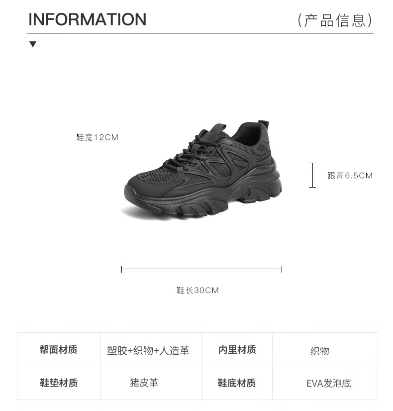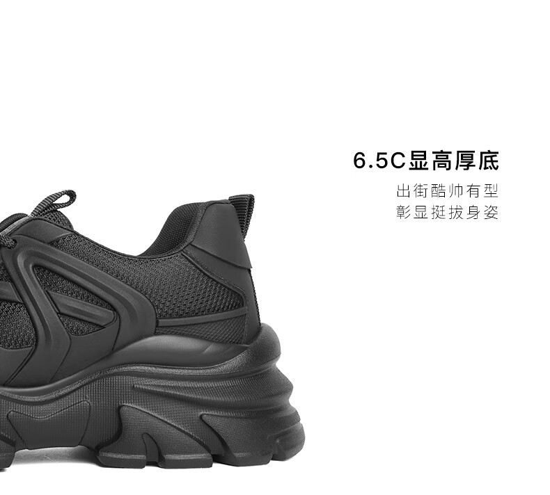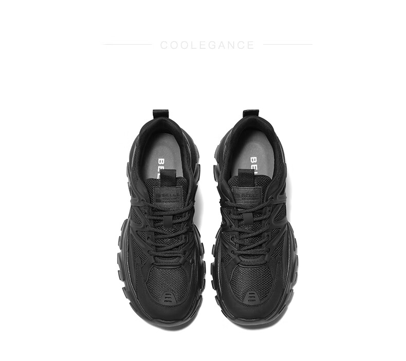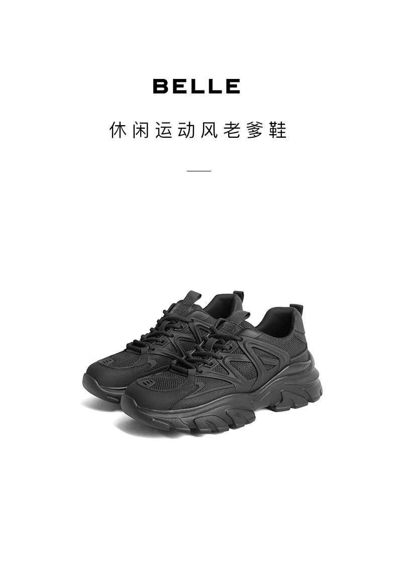 百丽厚底增高休闲鞋2023秋季新网面透气轻便运动风老爹鞋A1291CM3 黑色 38