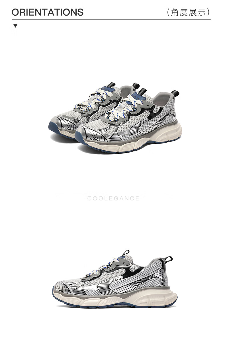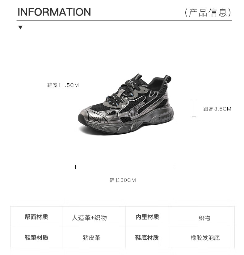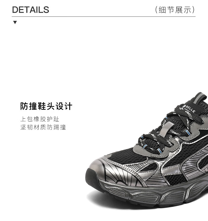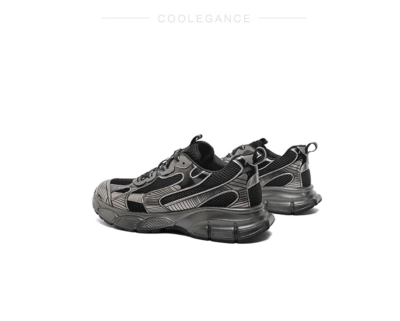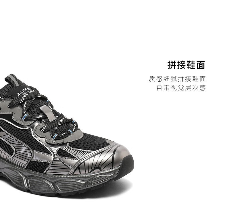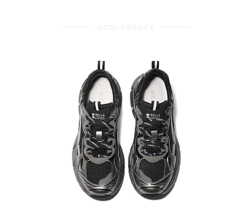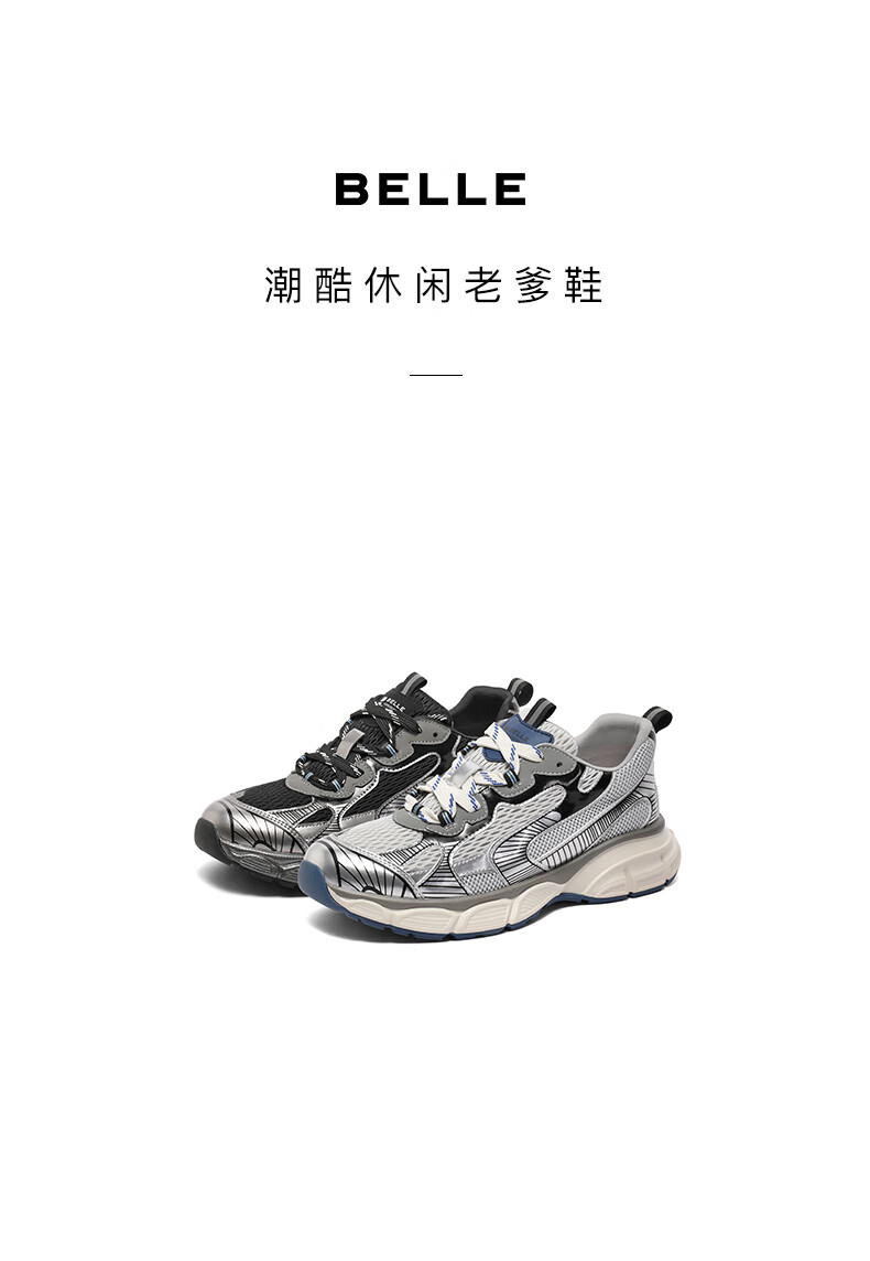 百丽潮酷撞色休闲鞋男2023冬新网面透气轻便运动风老爹鞋A1290CM3 灰色 38