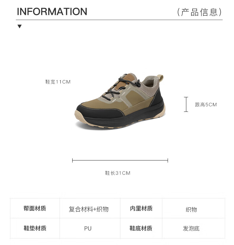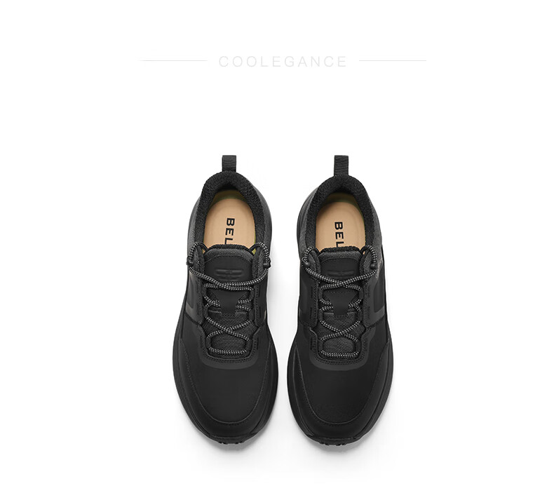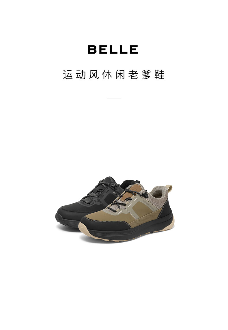 百丽厚底休闲运动鞋男2023冬新商场同款户外山系登山鞋8DA01DM3预售 黑色 38