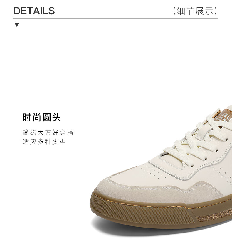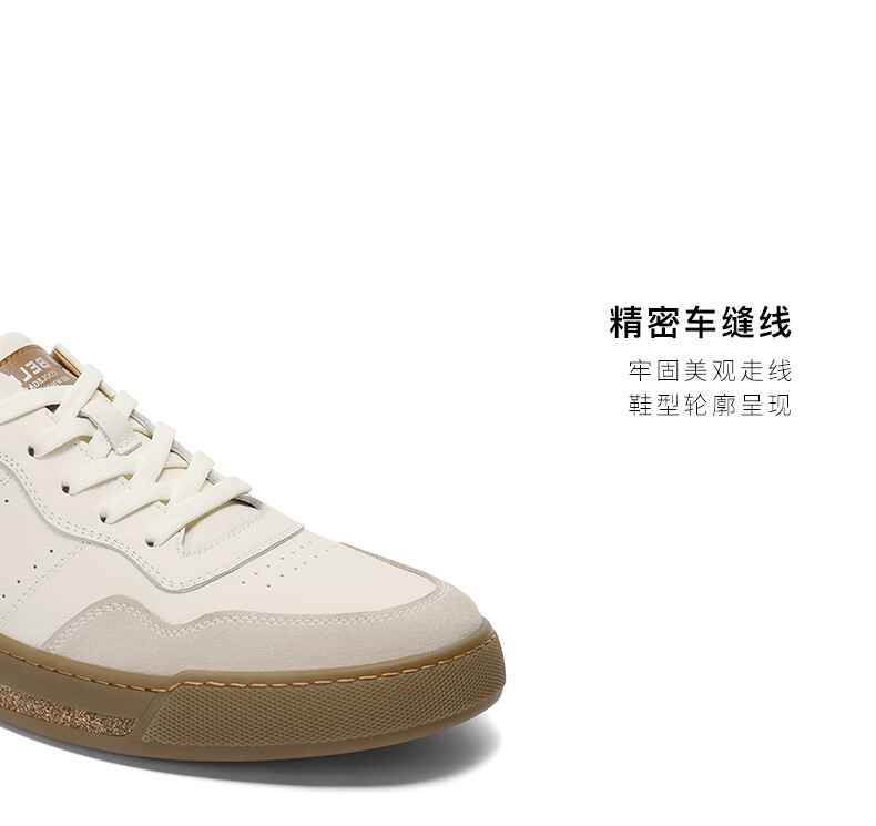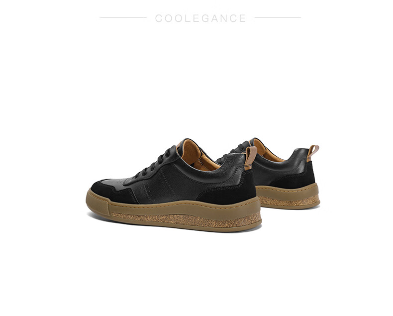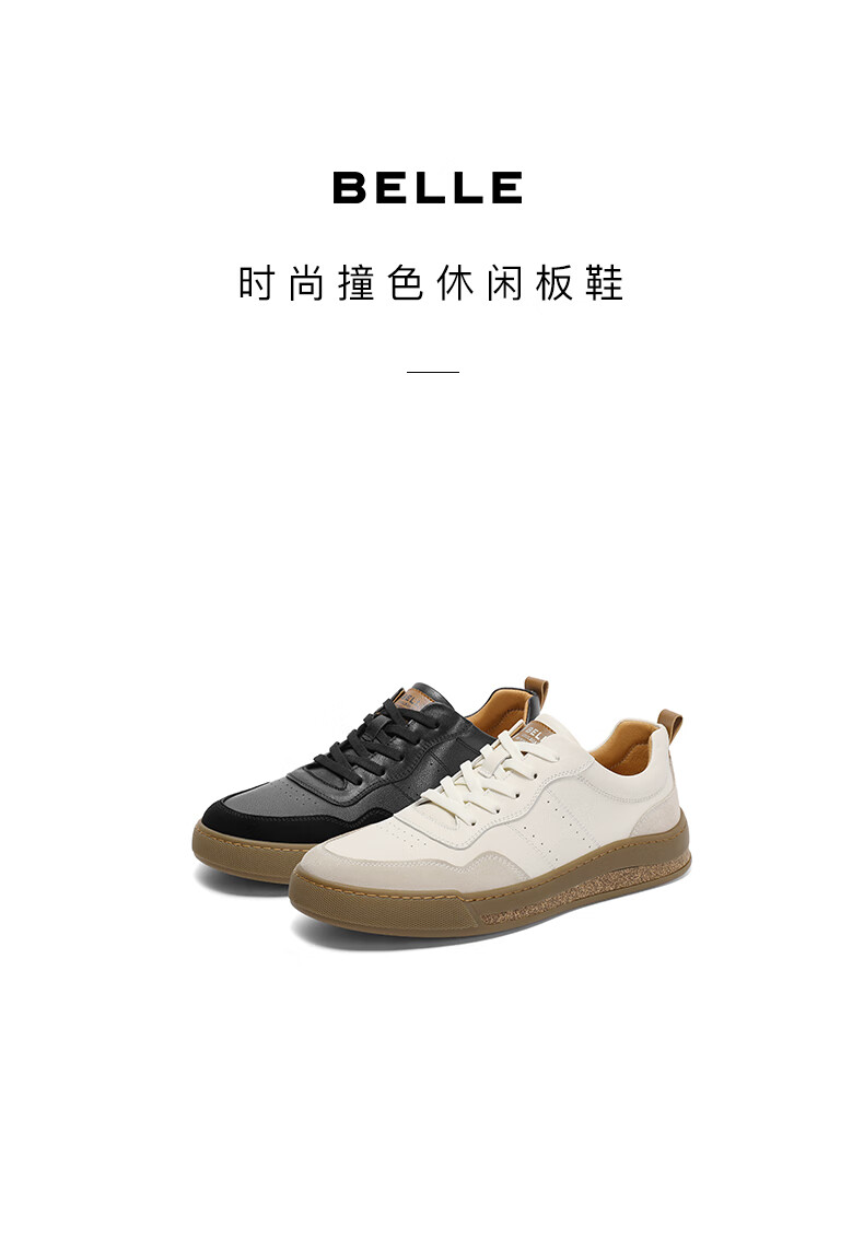 百丽时尚撞色小白鞋男2023秋季新款皮革拼接舒适低帮休闲板鞋A1237CM3 黑色 38