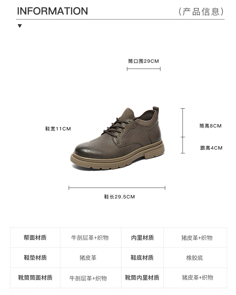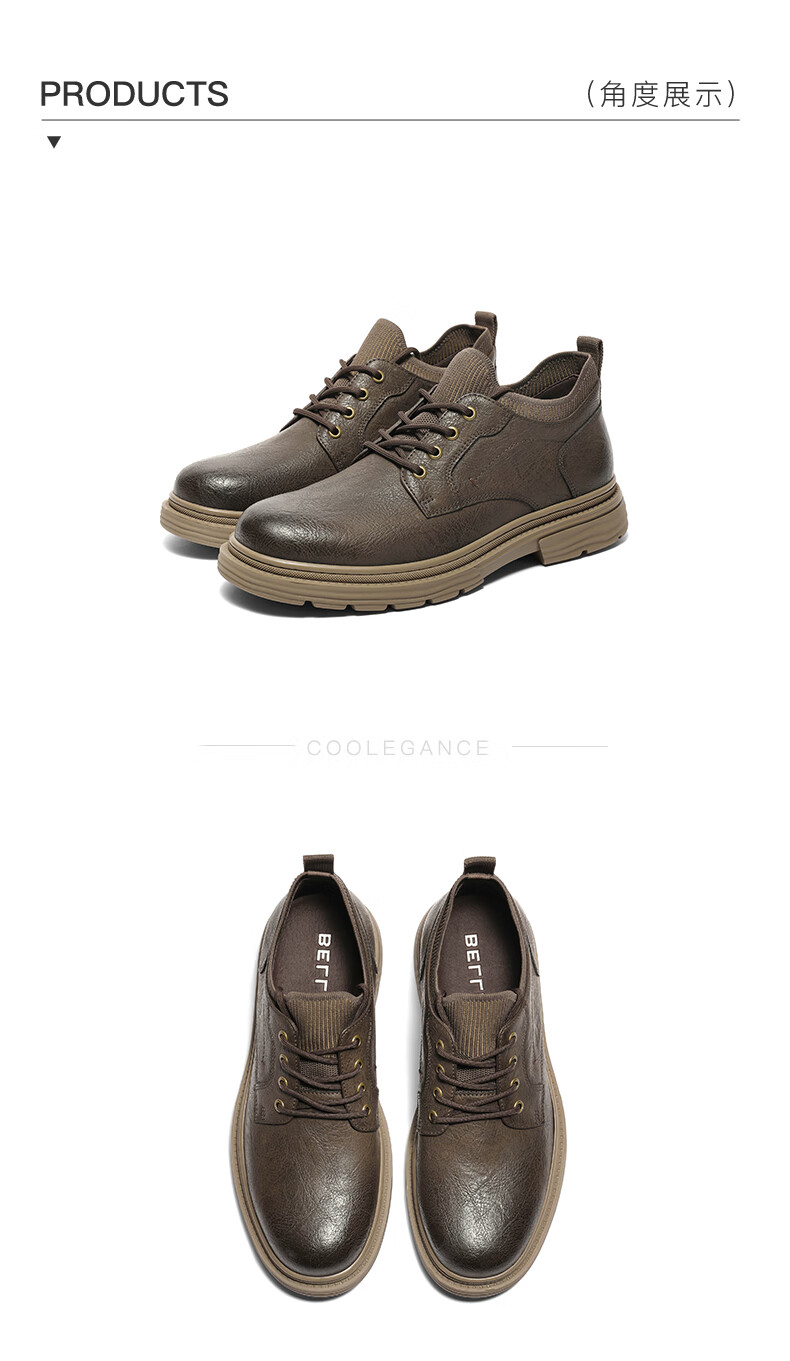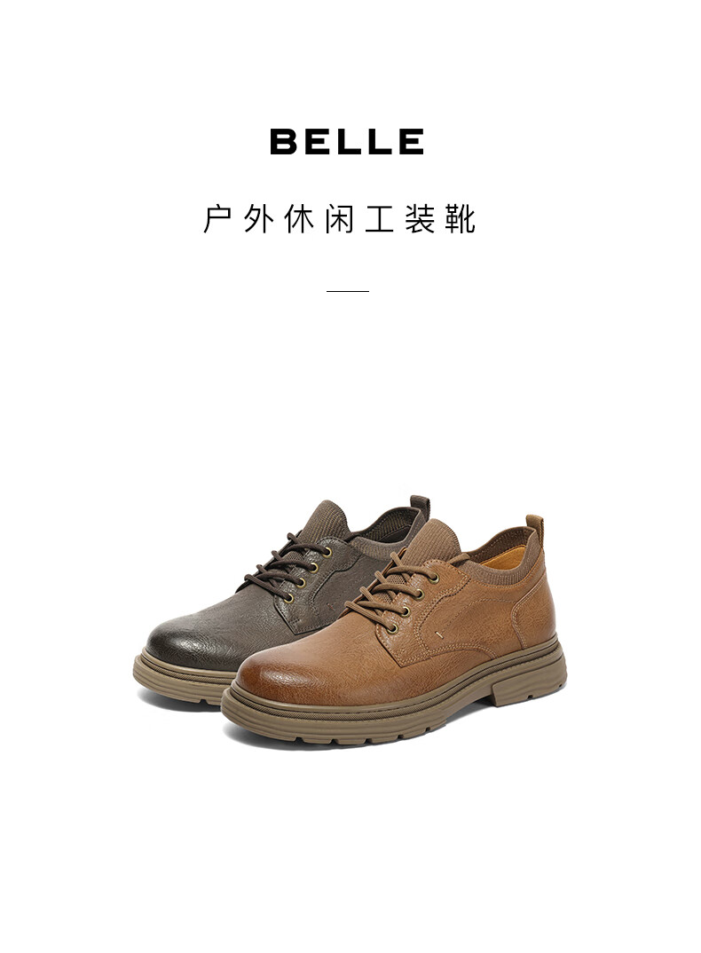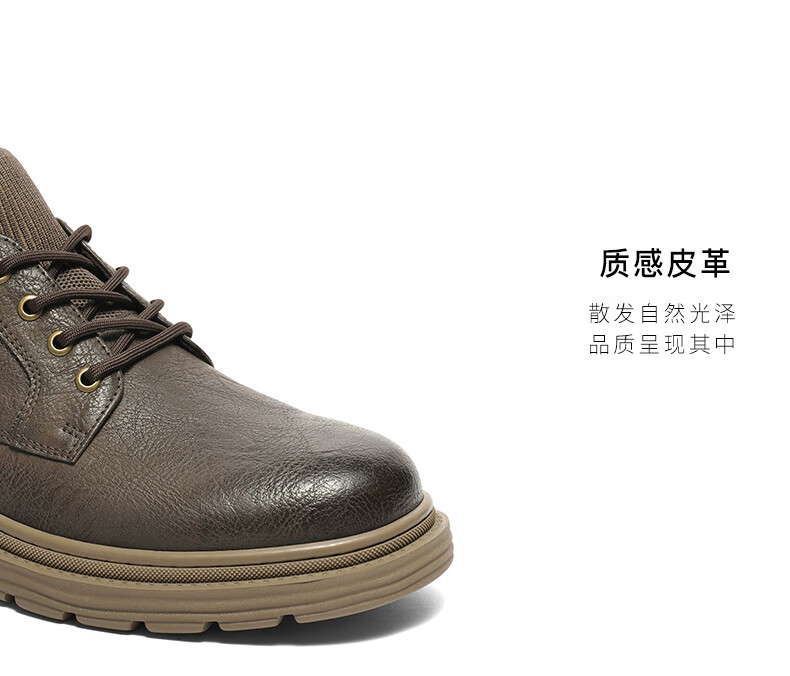 百丽潮搭休闲鞋男2023冬季新商场同款抓纹牛皮户外工装靴D9H40DD3预售 啡色 38