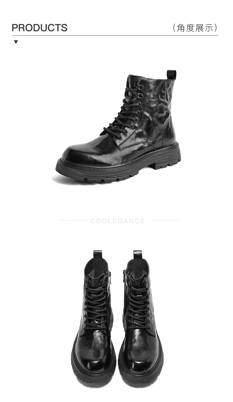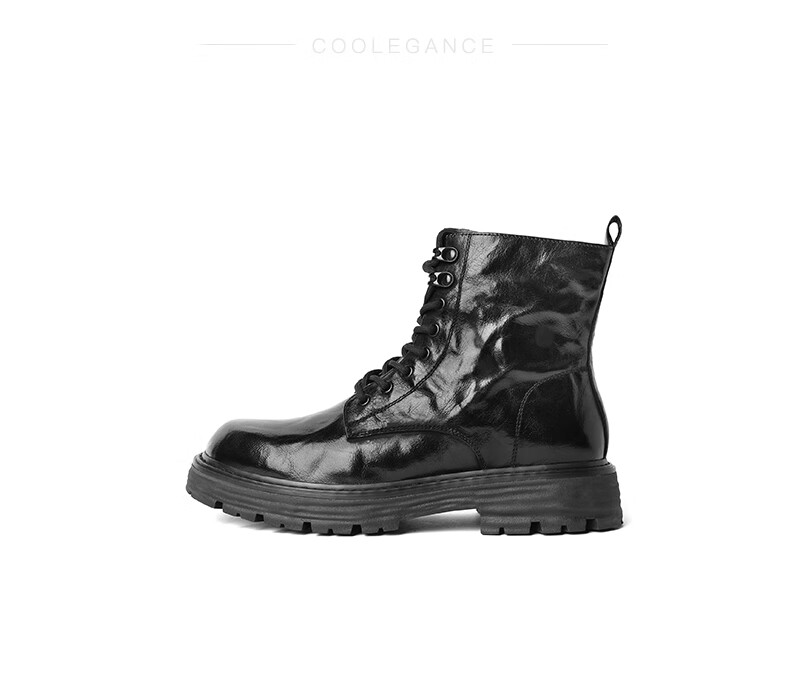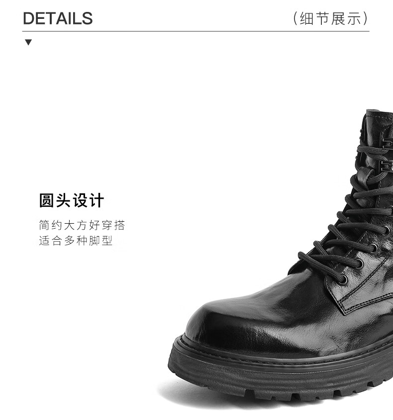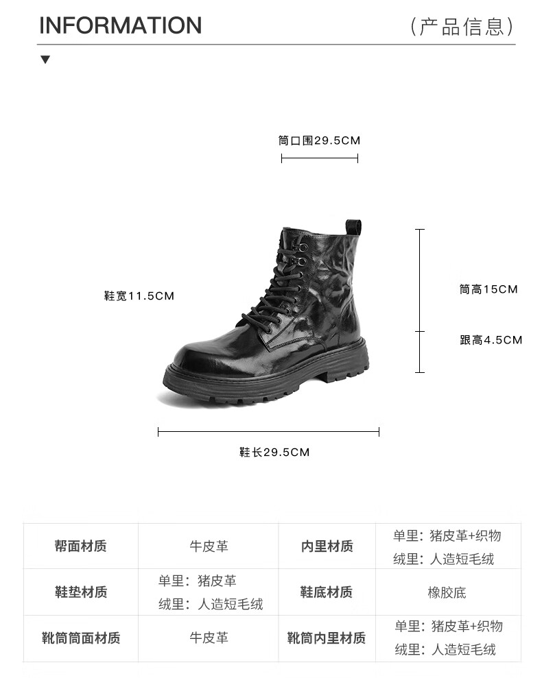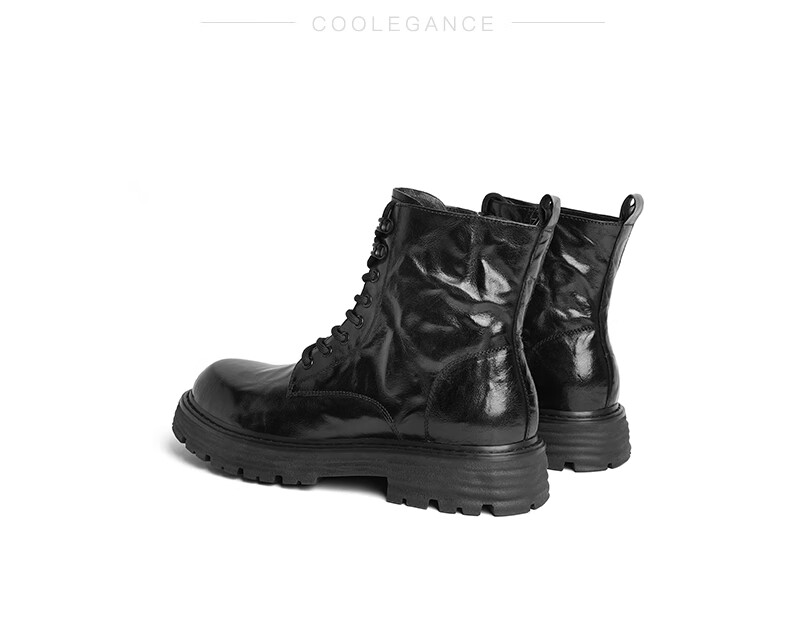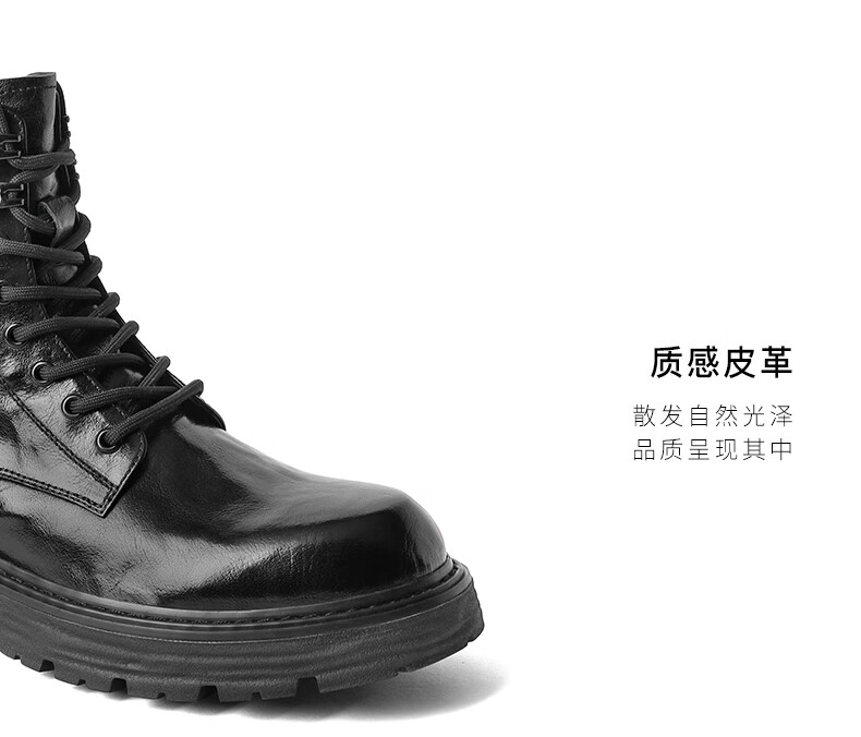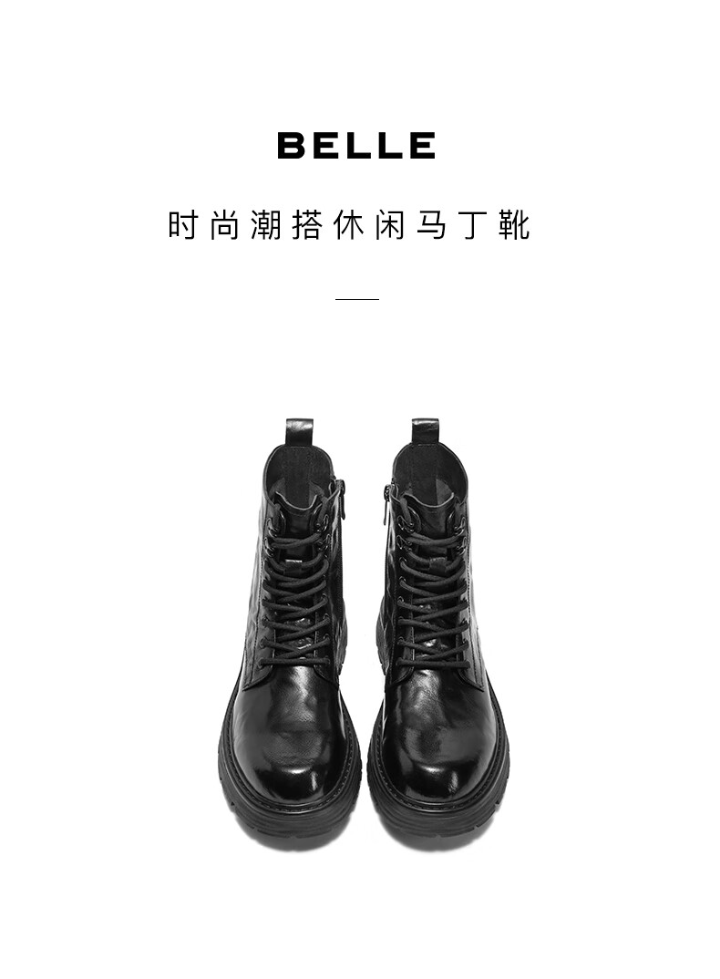 百丽时尚休闲皮靴男2023冬季新牛皮革户外潮搭马丁靴加绒A1278DZ3 黑色-绒里 38
