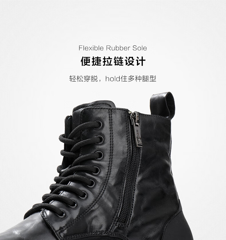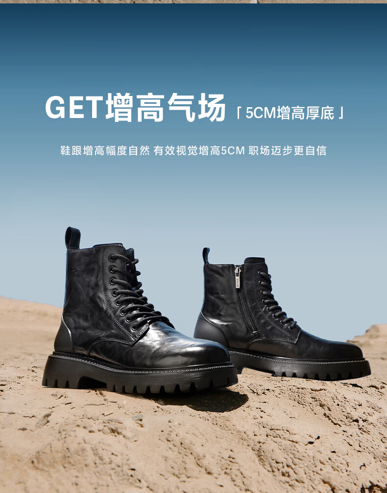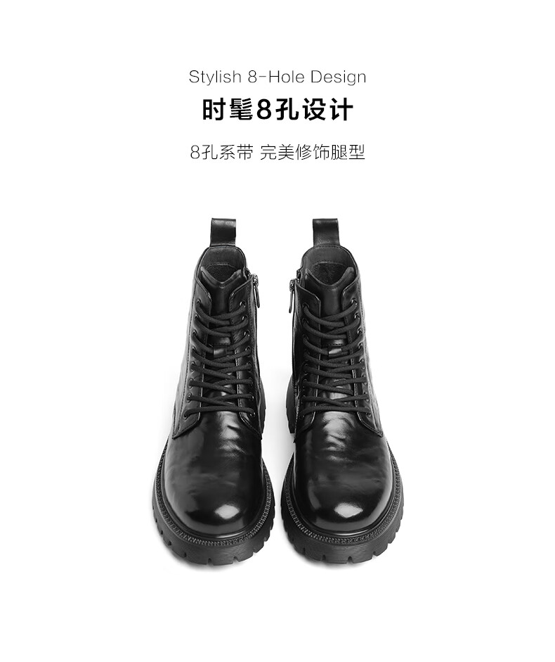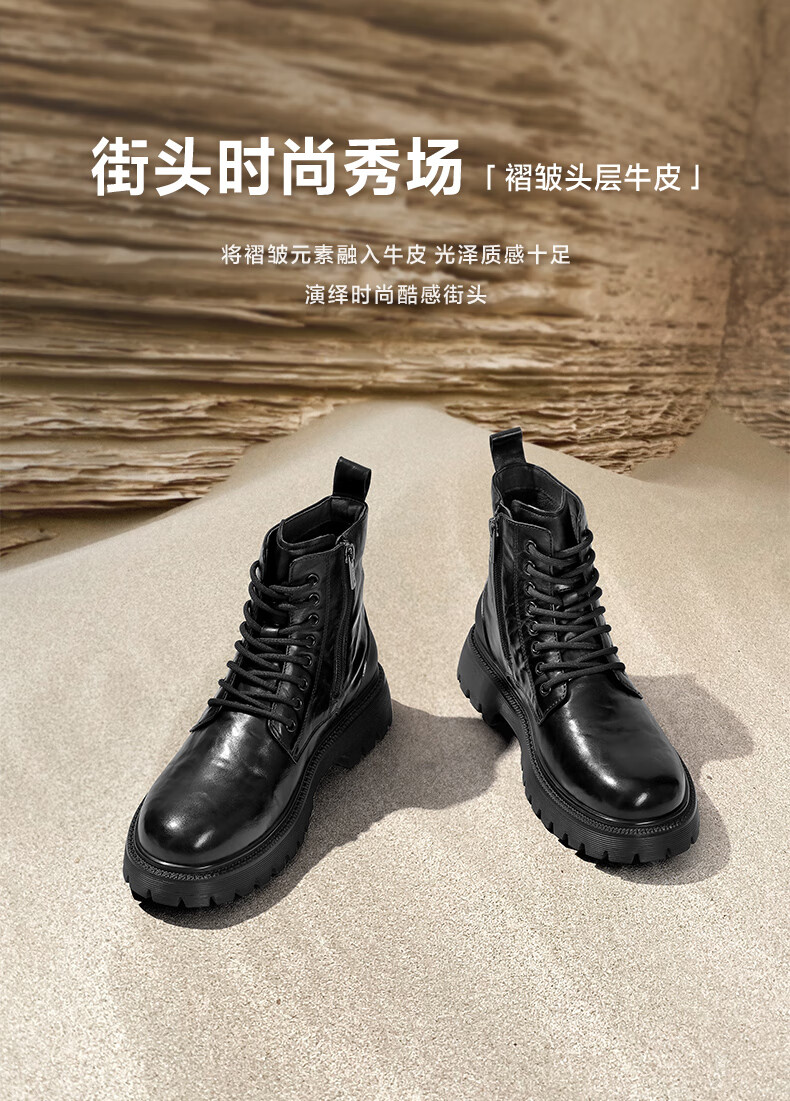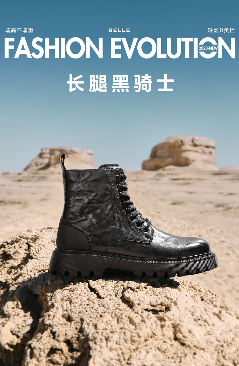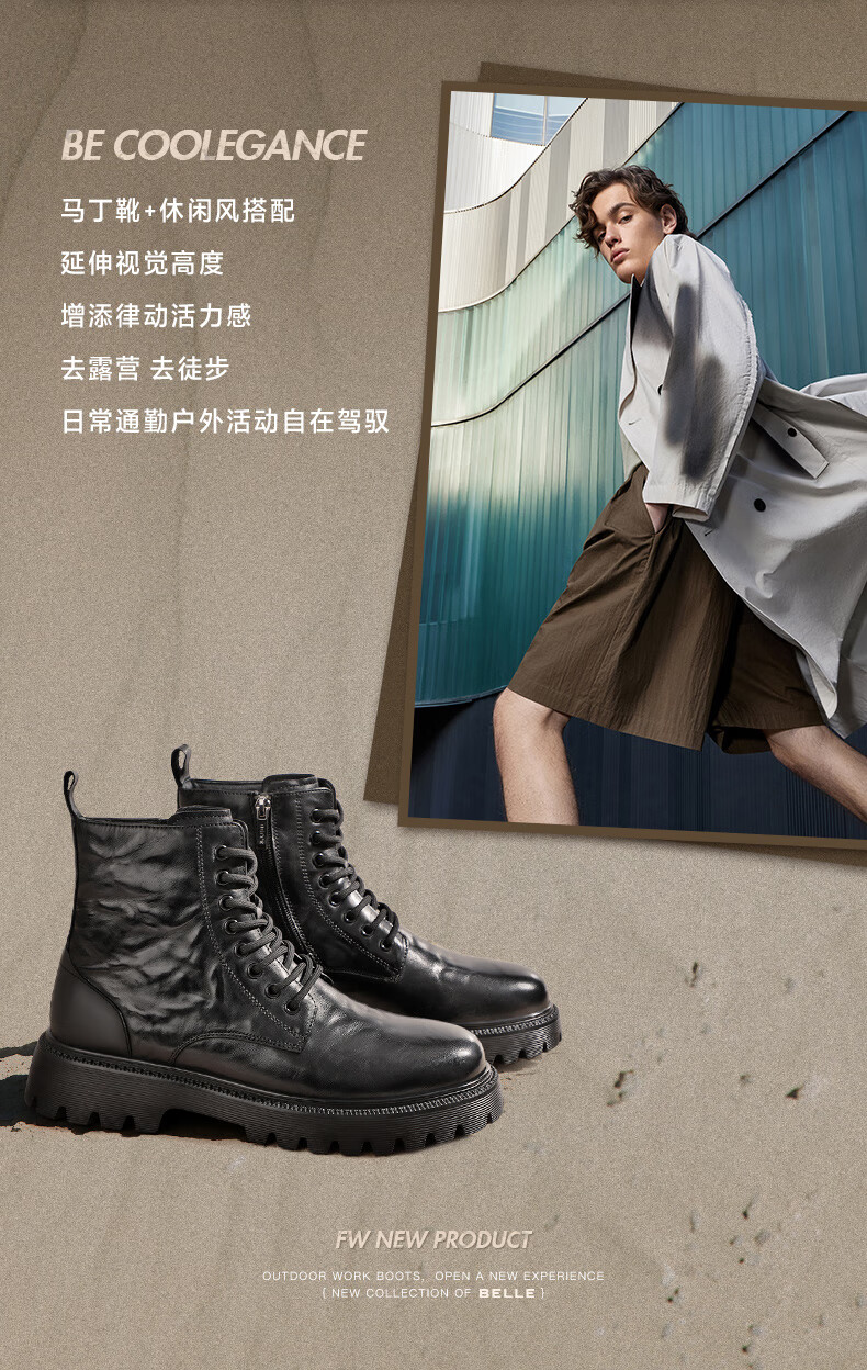 百丽潮搭休闲靴男2023冬季新商场同款牛皮时尚马丁靴加绒8CP01DD3预售 黑色-单里 38